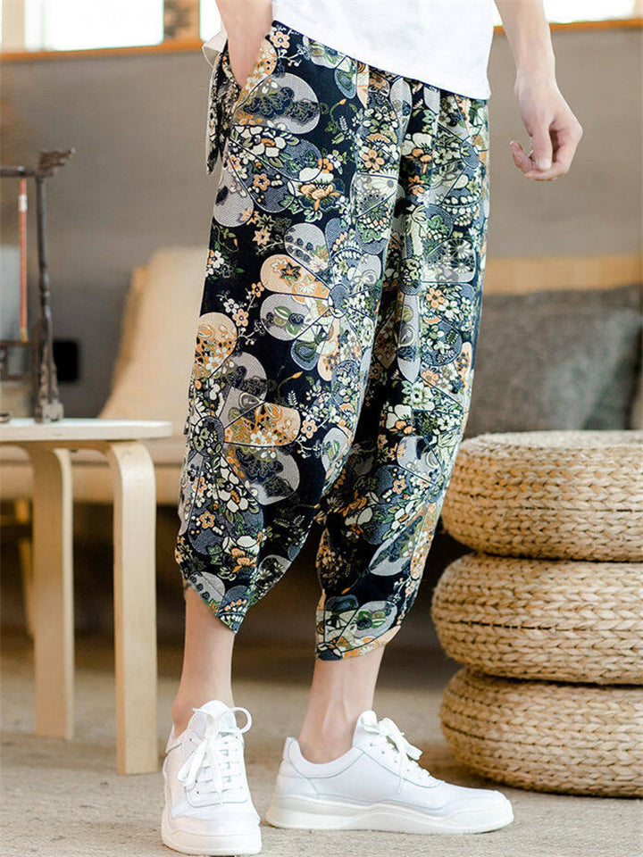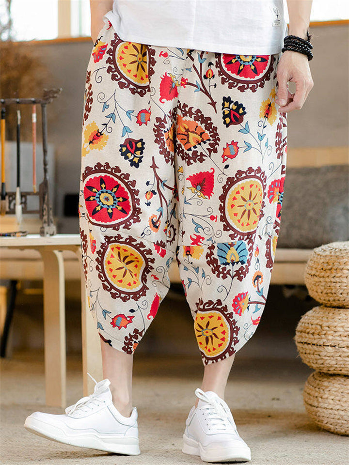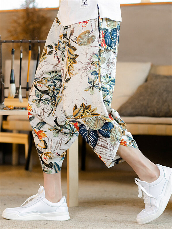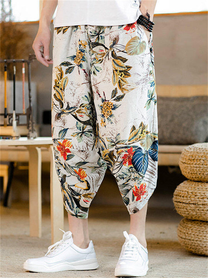 Men's Summer Ethnic Style Beach Bloomers Drop Crotch Capri Pants