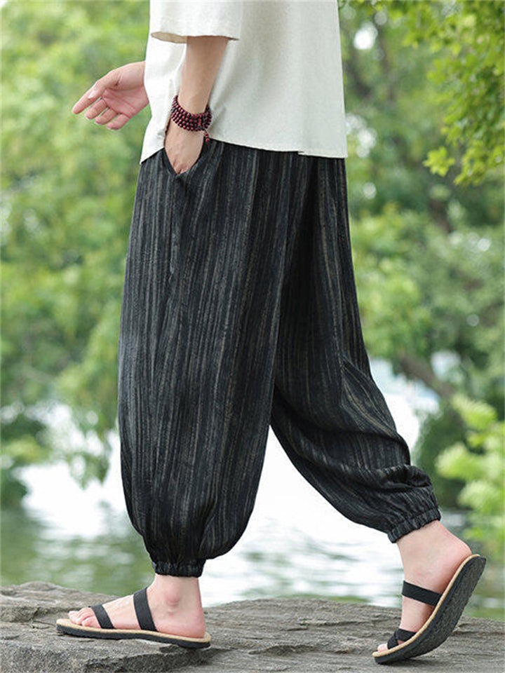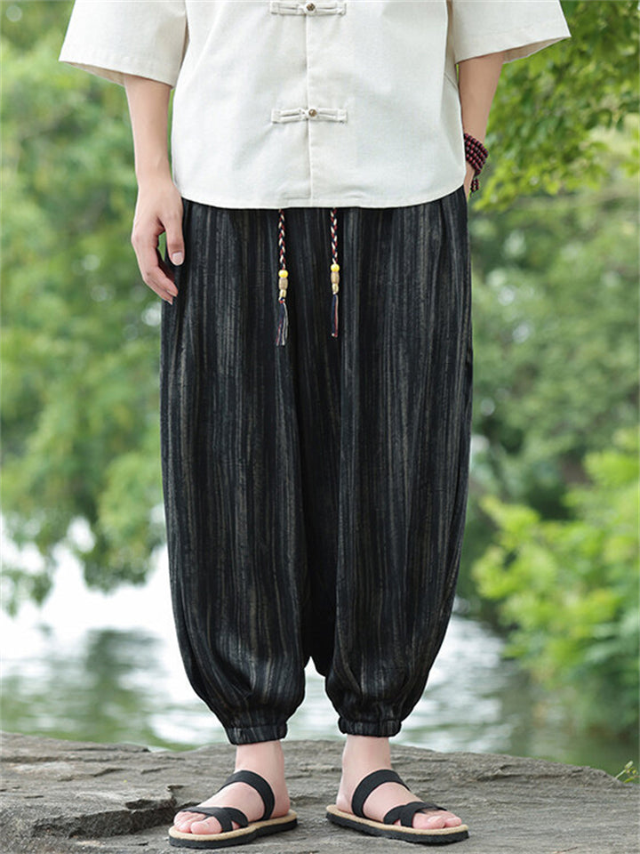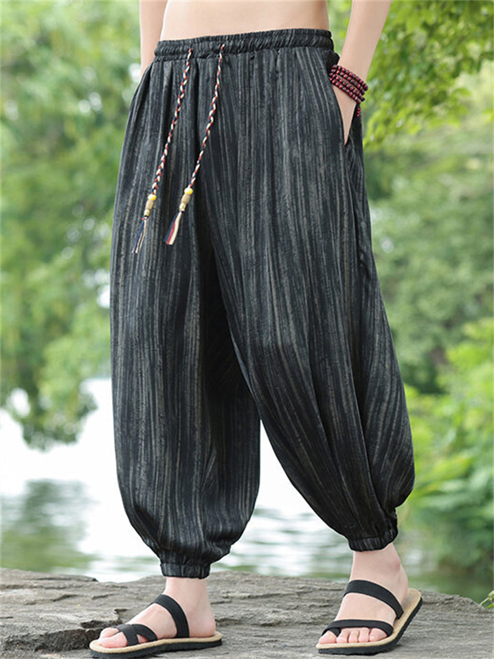 Men's Retro Summer Striped Drawstring Bloomers Jogger Pants