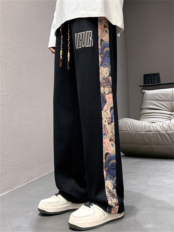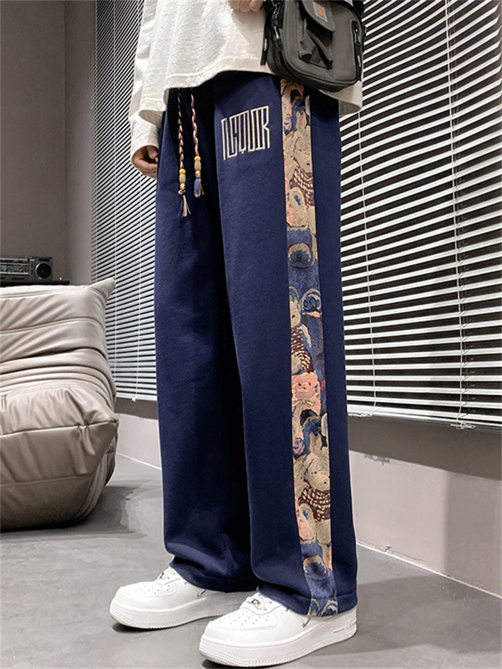 Male Beaded Tasseled Drawstring Plus Size Pants
