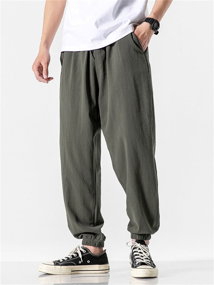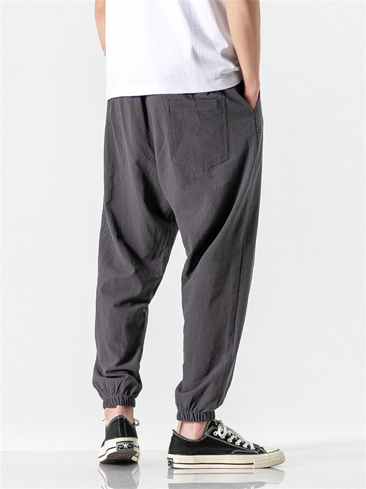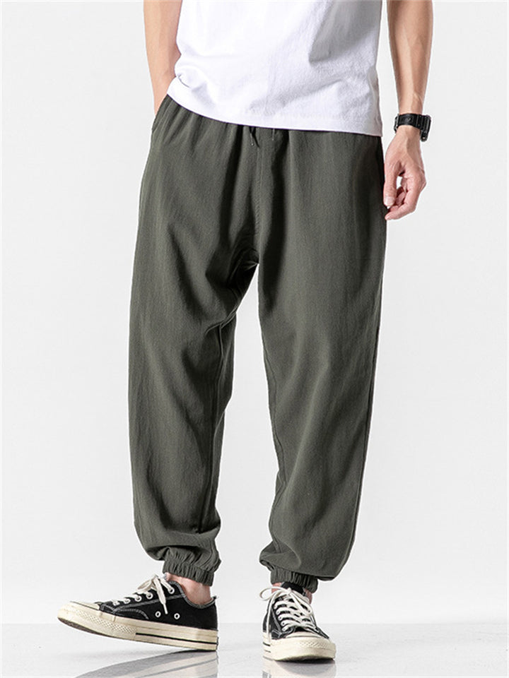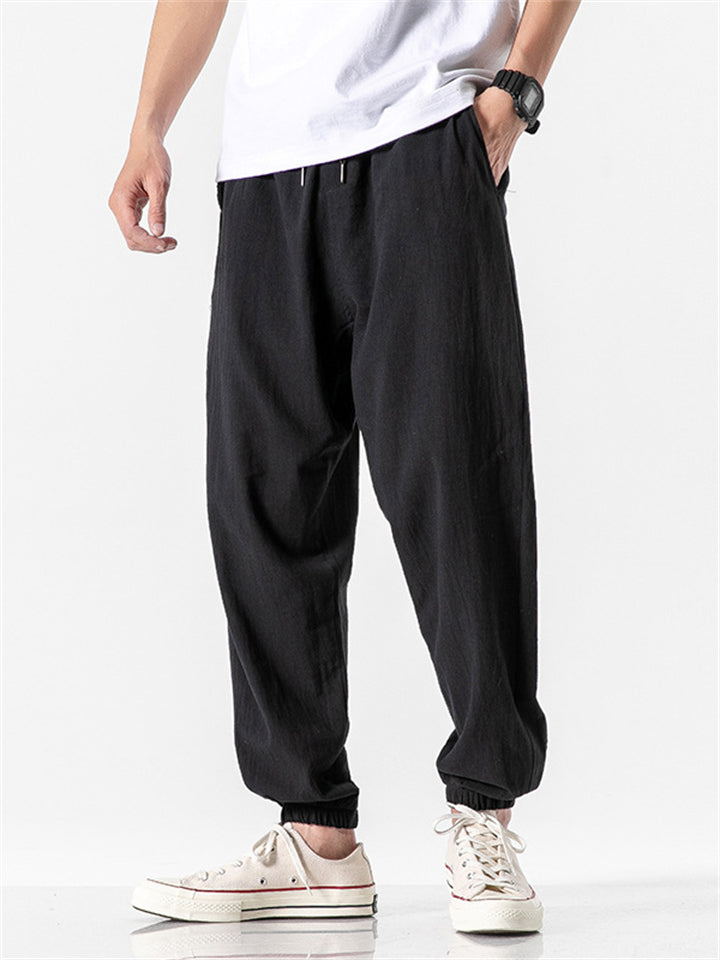 Vintage Japanese Street Style Drawstring Linen Pants for Men