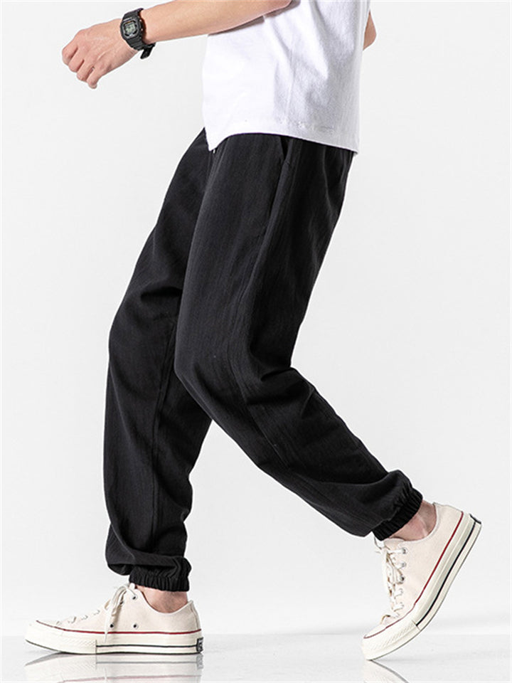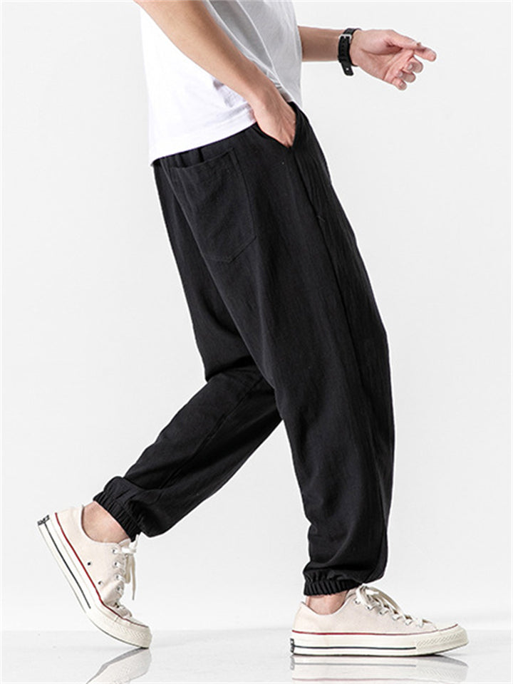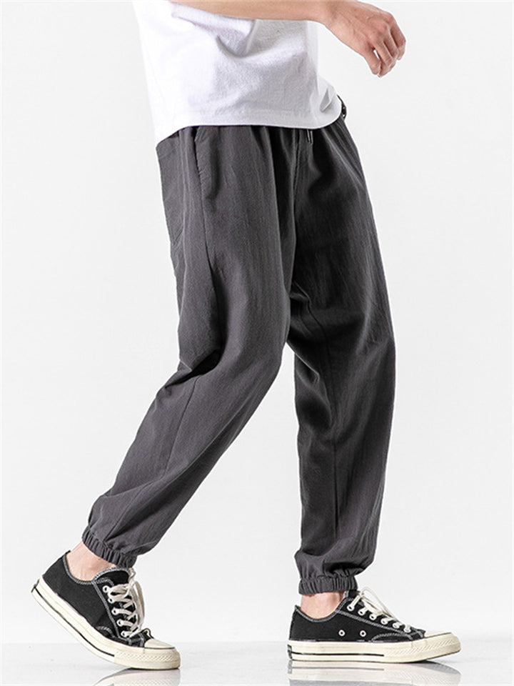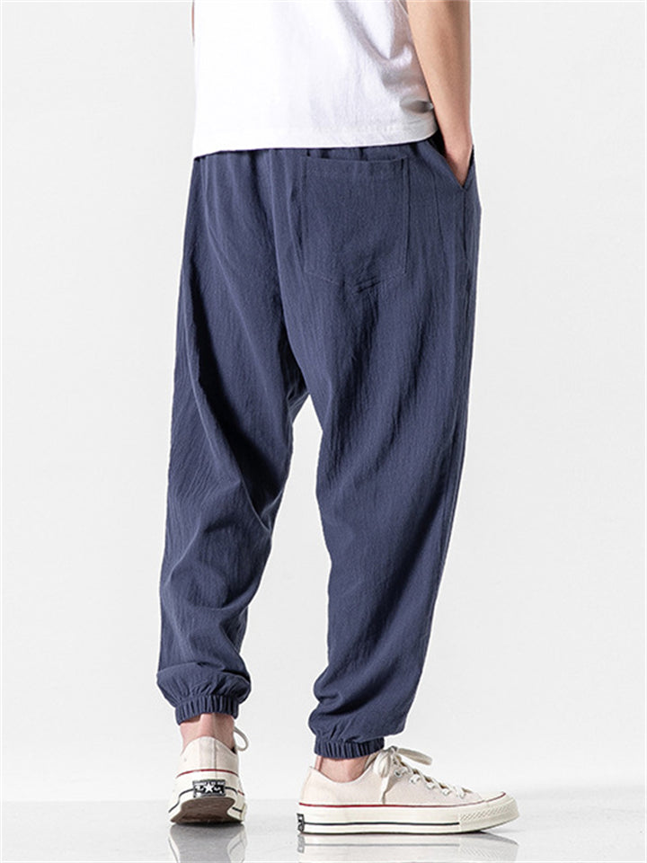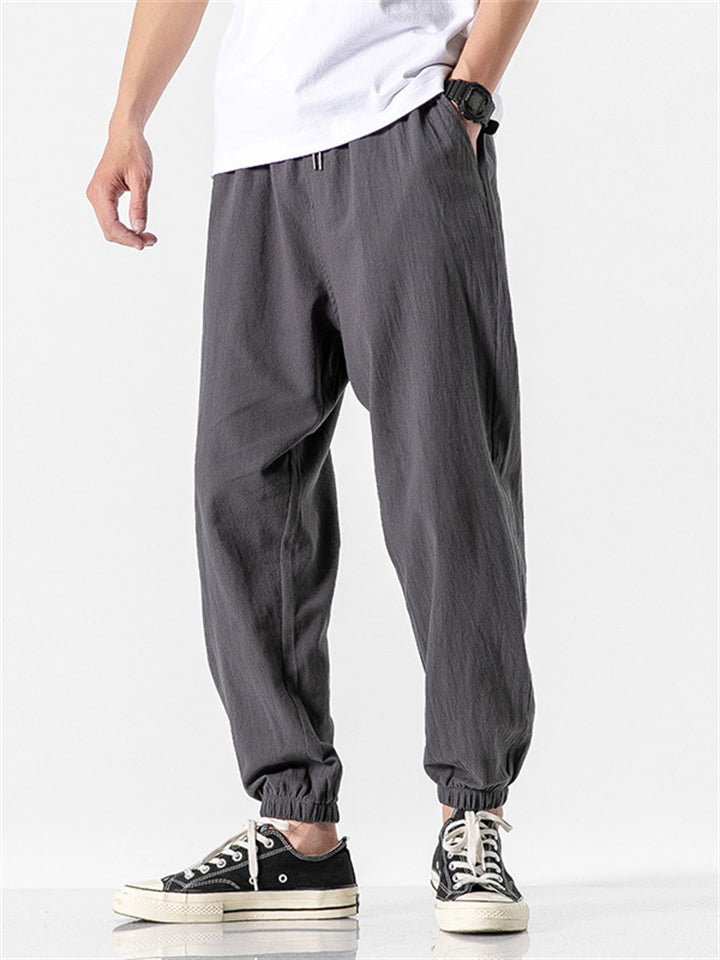 Vintage Japanese Street Style Drawstring Linen Pants for Men