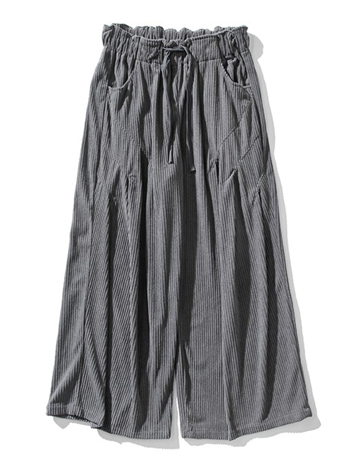 Men's Autumn Vintage Striped Drawstring Wide Leg Pants