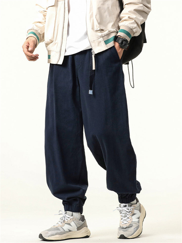 Vintage Japanese Street Style Drawstring Linen Pants for Men