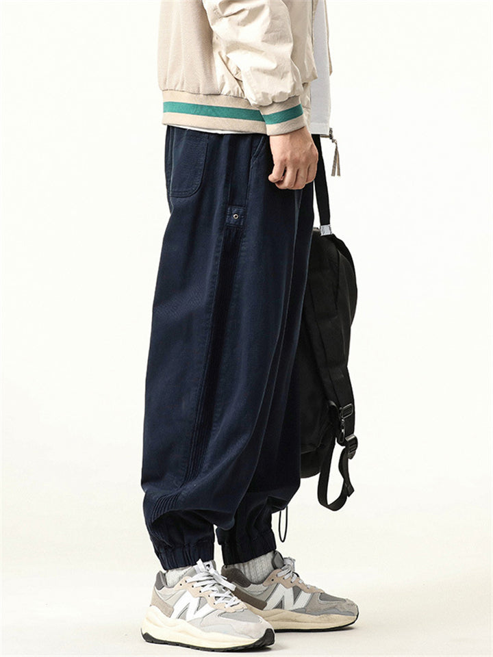 Men's Japanese Style Vintage Solid Color Texture Scimitar Pants