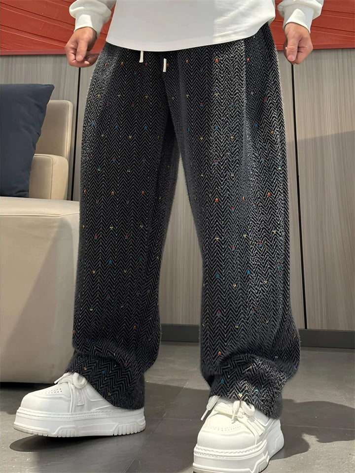 Men's Winter Casual Loose Fit Mid-Waist Drawstring Straight Leg Pants