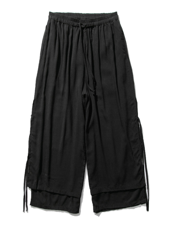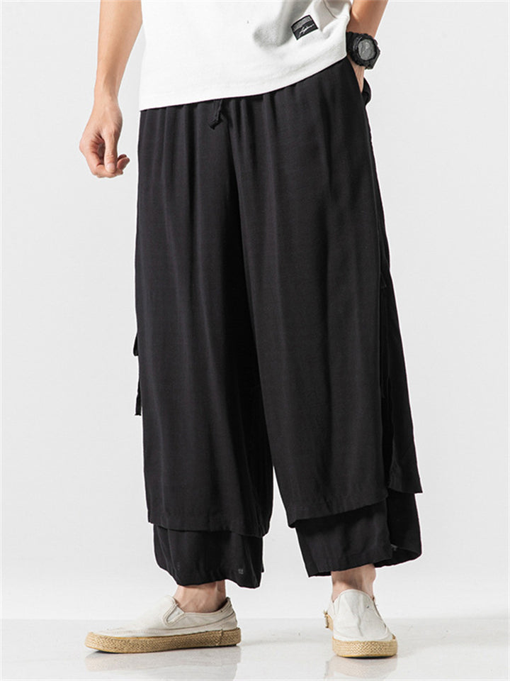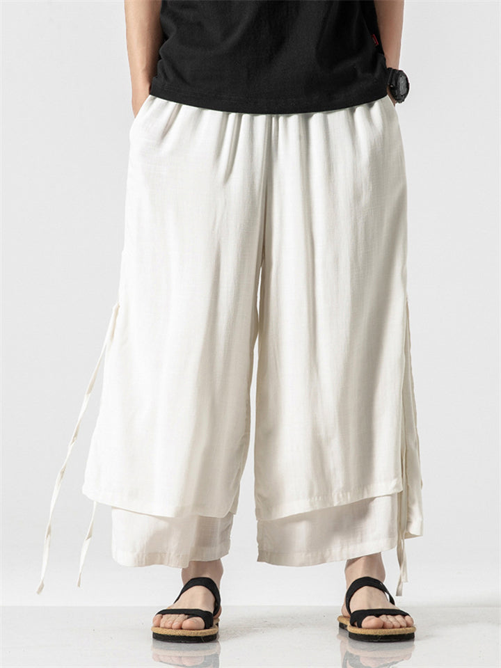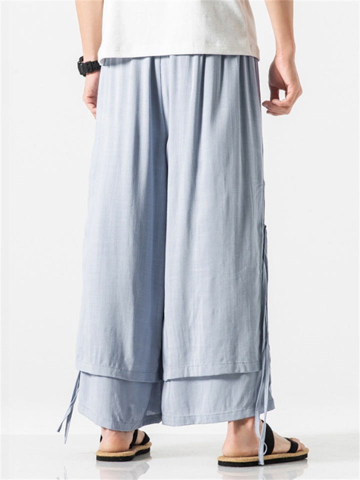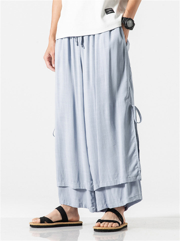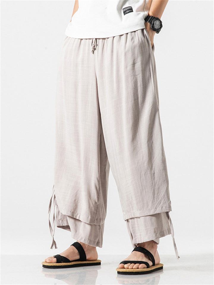 Men's Zen Buddhism Layered Side Slit Lace Up Linen Pants