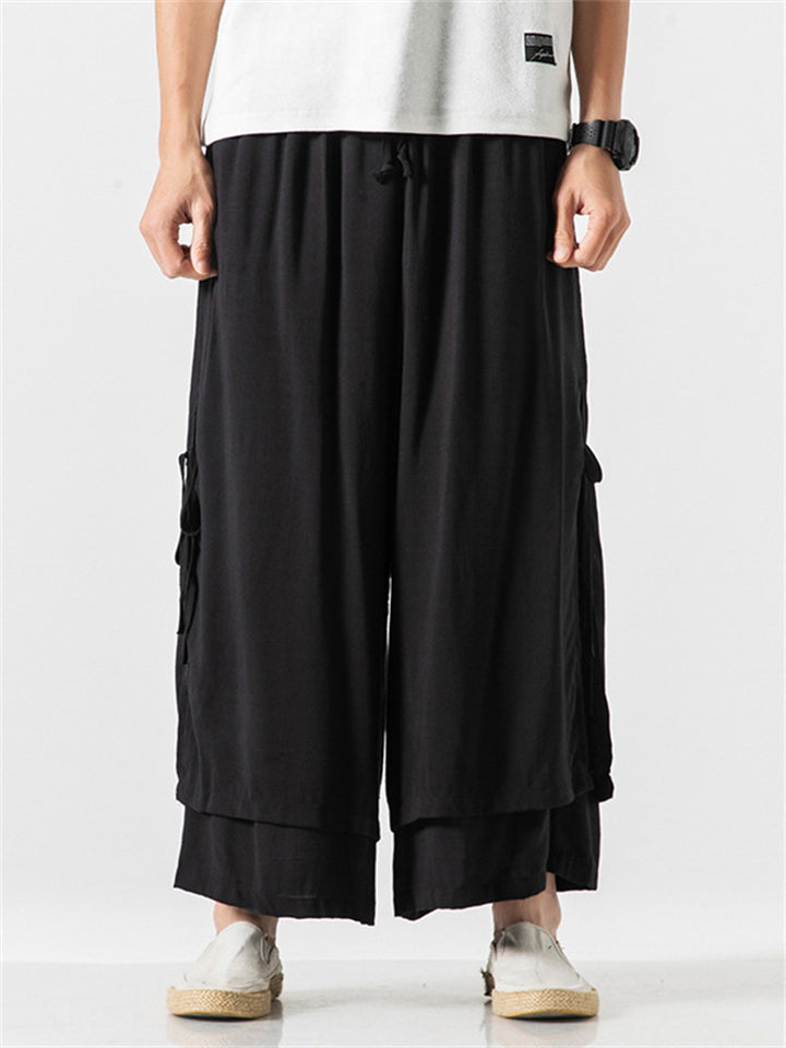 Men's Japanese Style Vintage Solid Color Texture Scimitar Pants