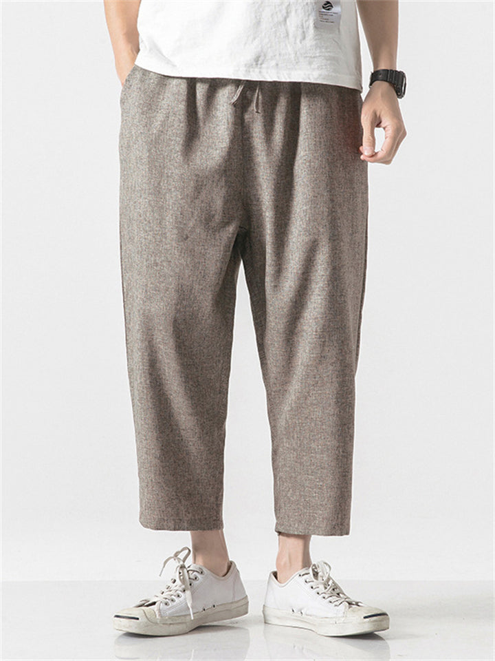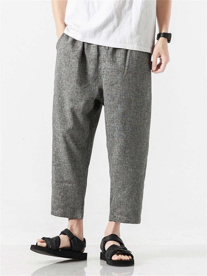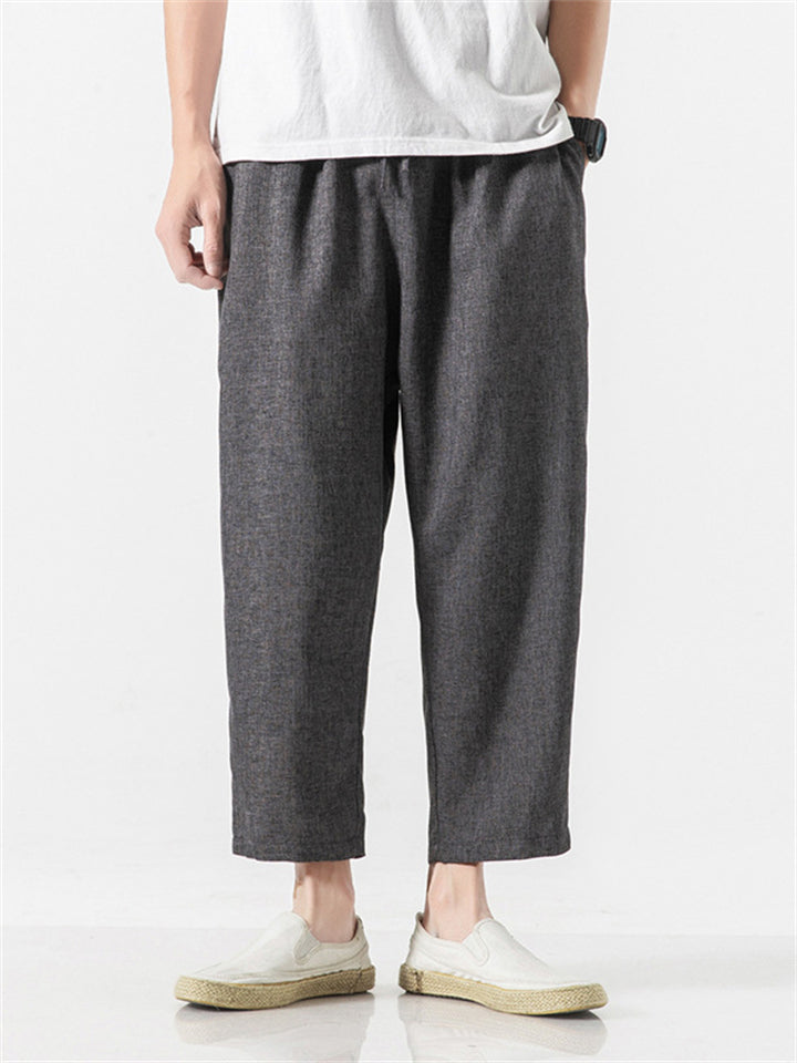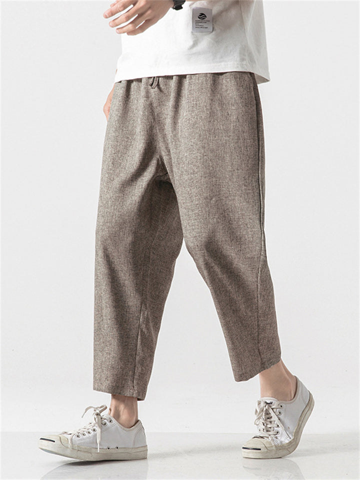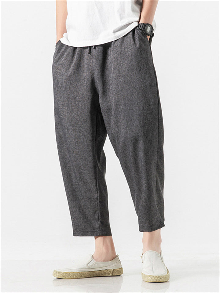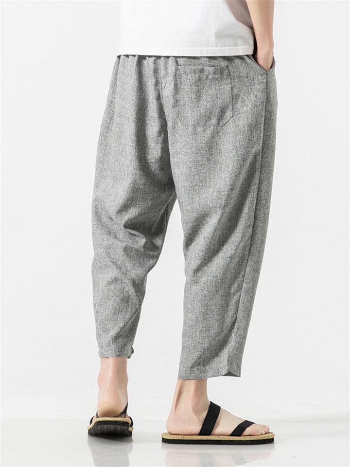 Vintage Japanese Street Style Drawstring Linen Pants for Men