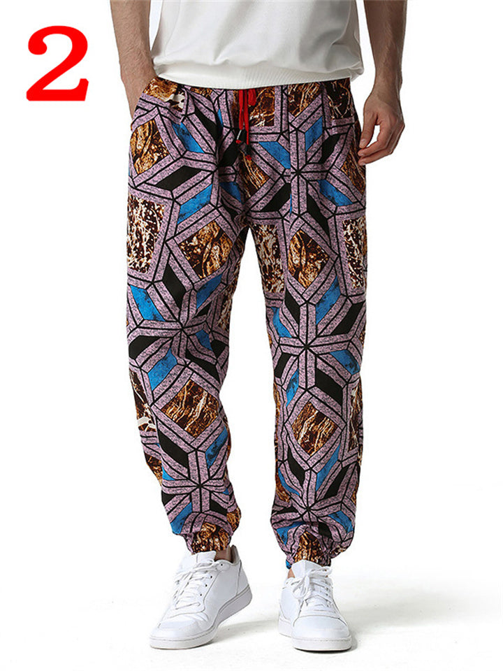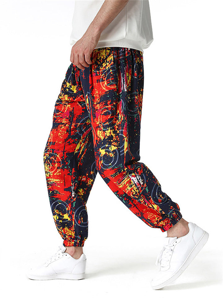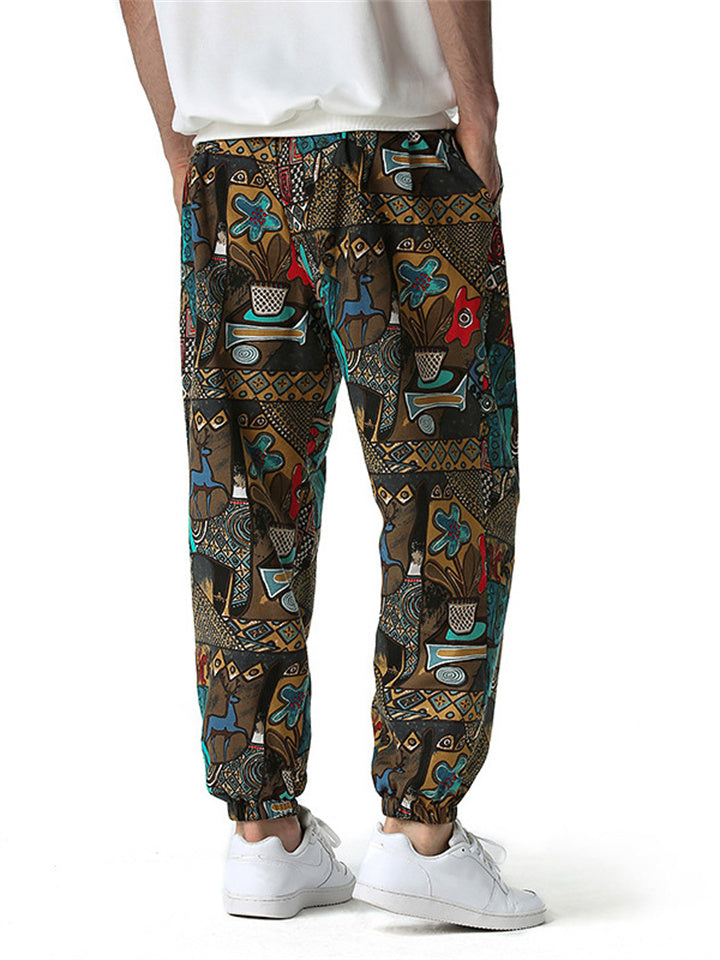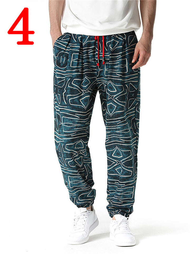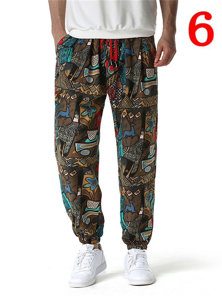 Men's Summer Ethnic Style Beach Bloomers Drop Crotch Capri Pants