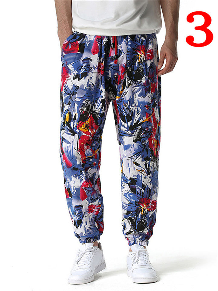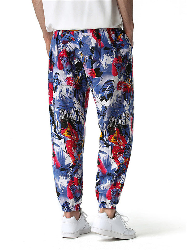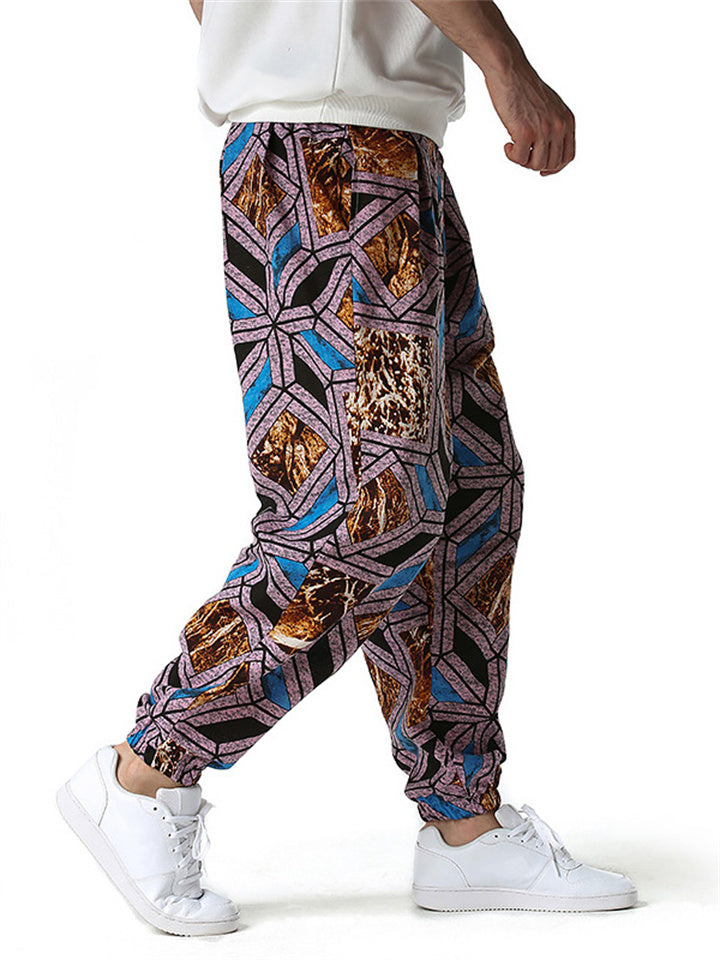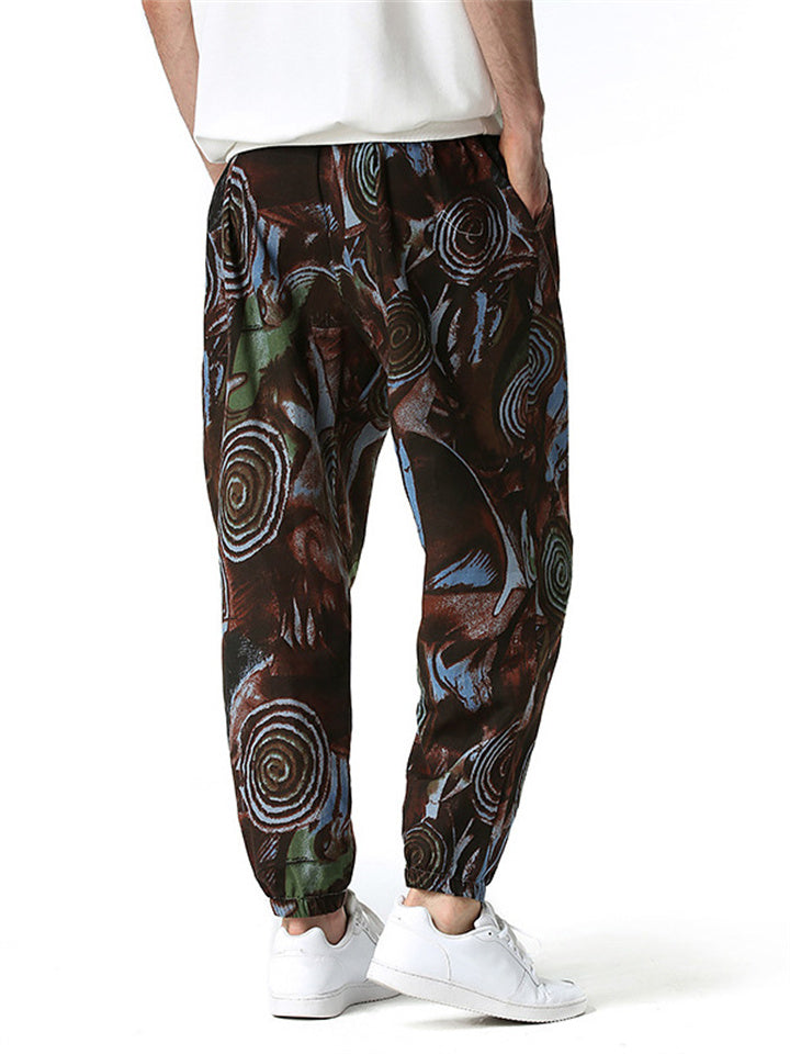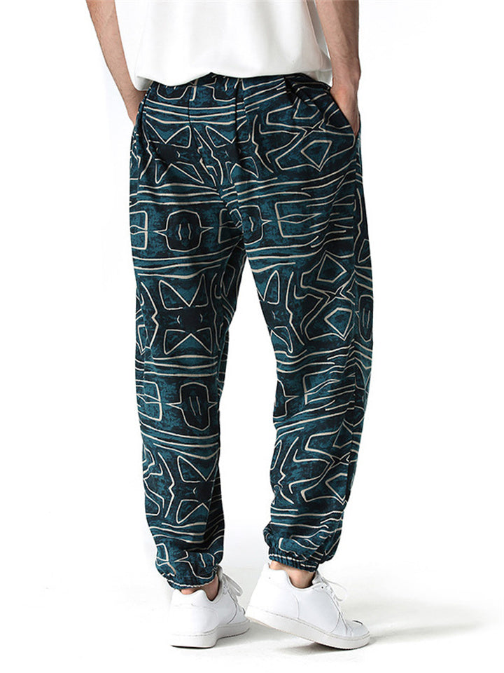 Men's Summer Ethnic Style Beach Bloomers Drop Crotch Capri Pants