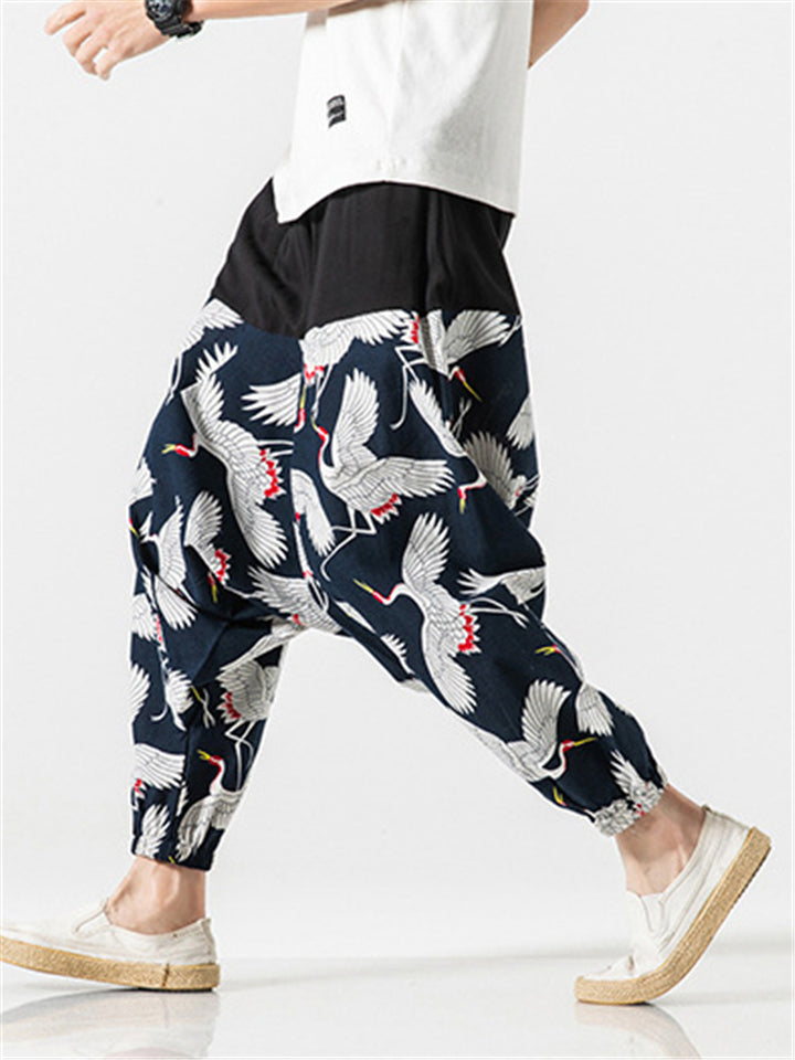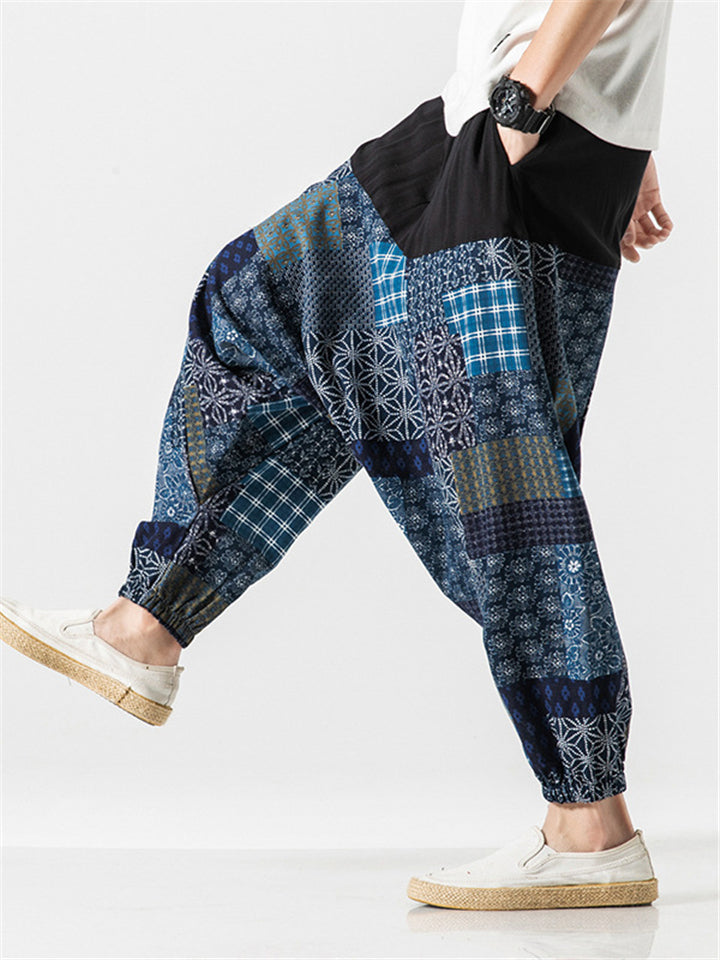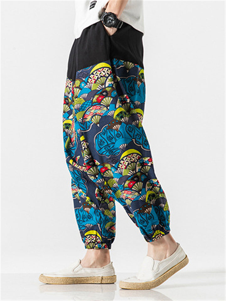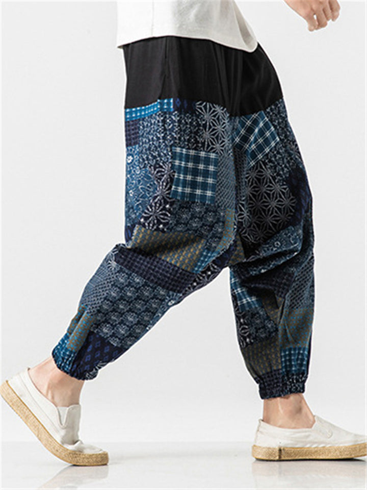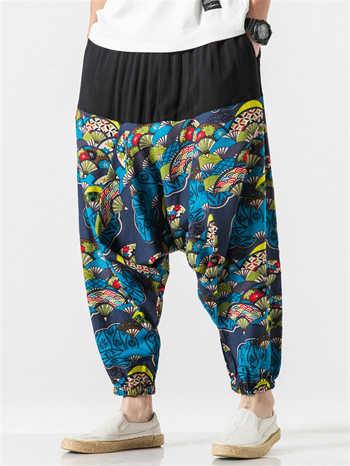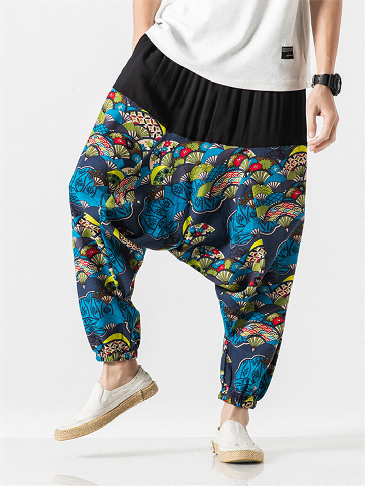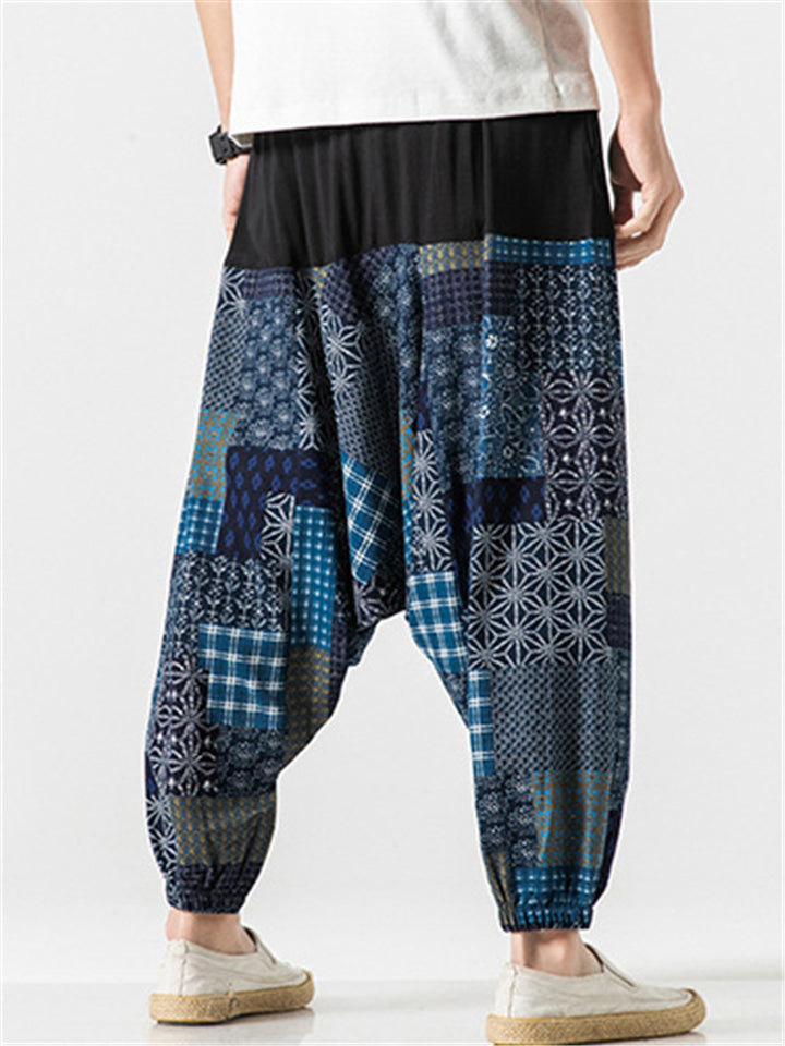 Men's Summer Ethnic Style Beach Bloomers Drop Crotch Capri Pants