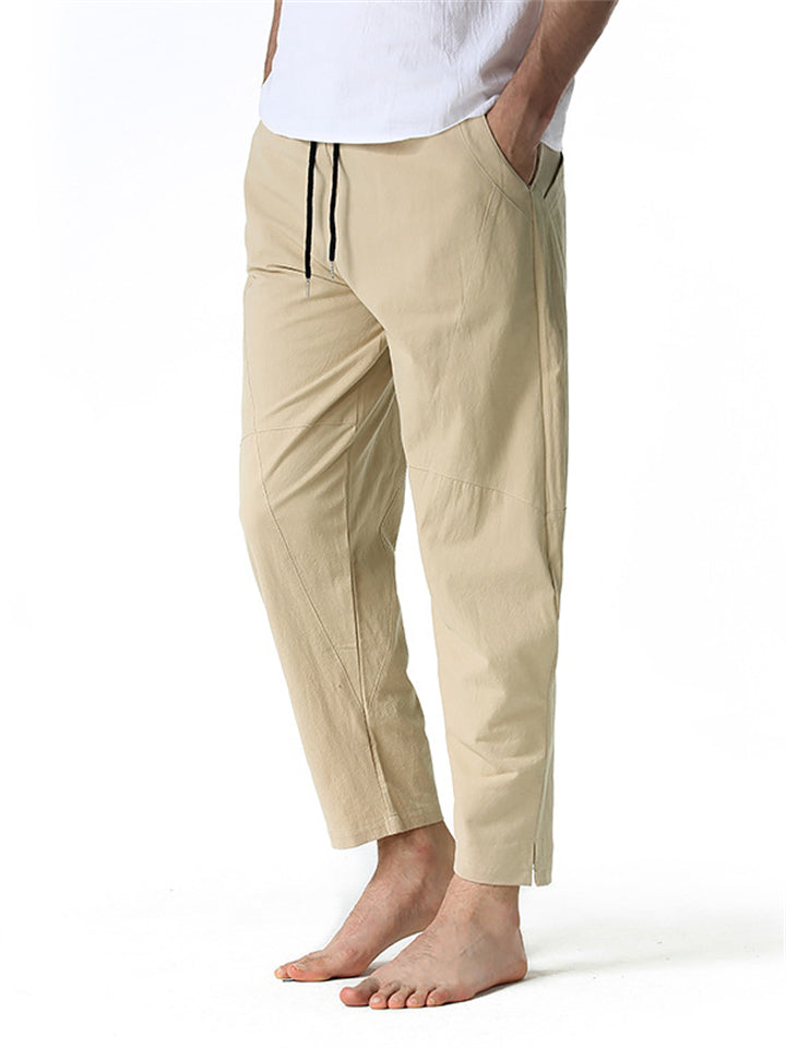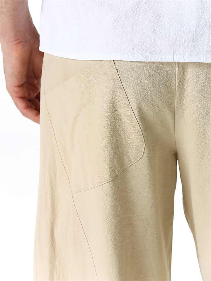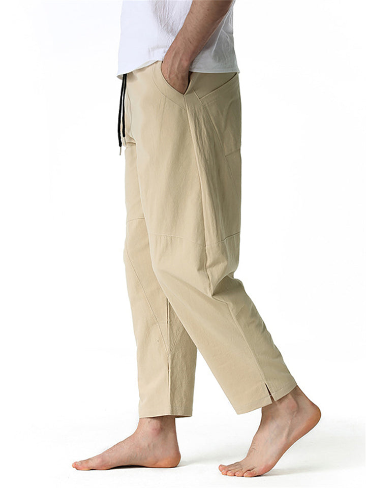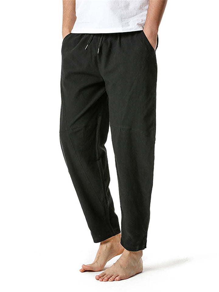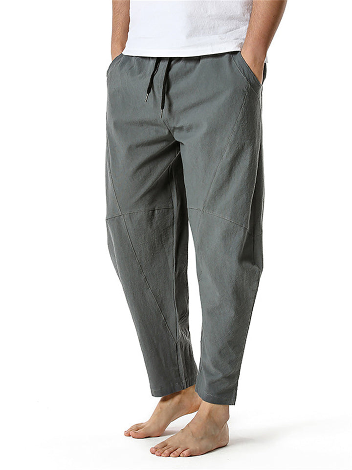 Vintage Japanese Street Style Drawstring Linen Pants for Men