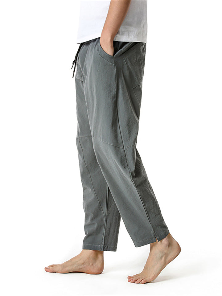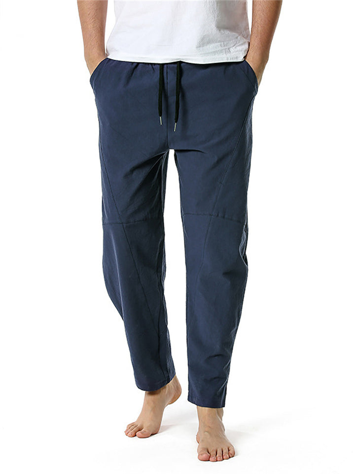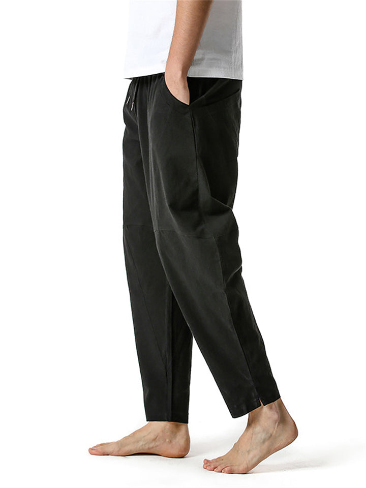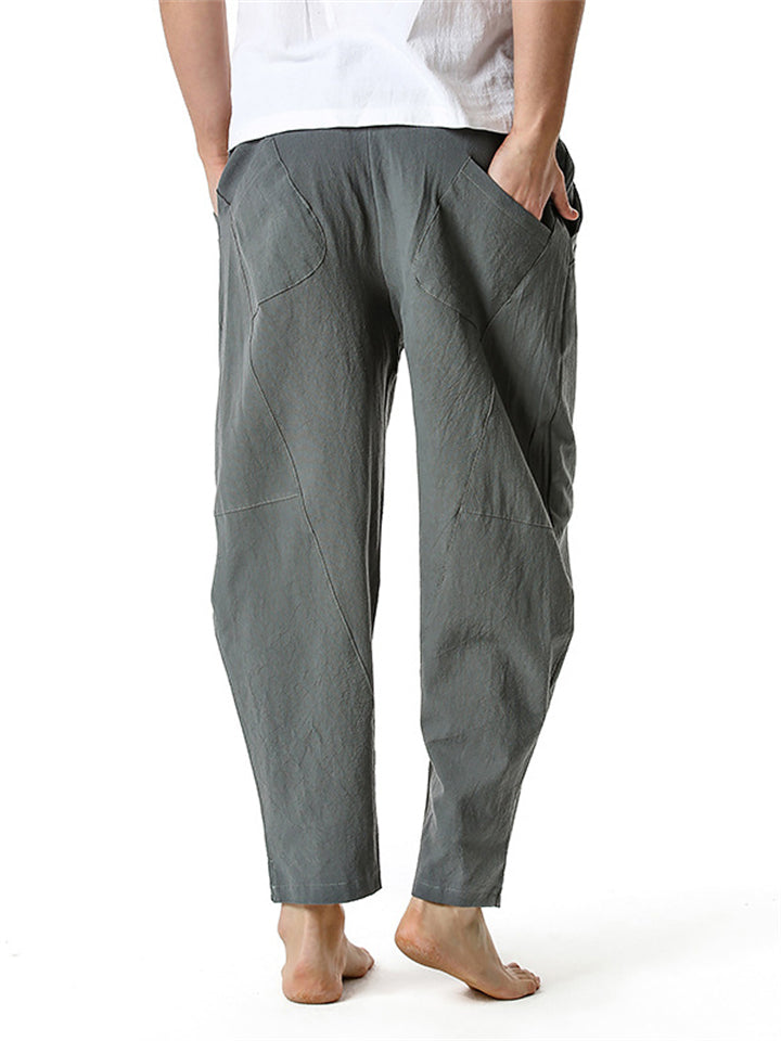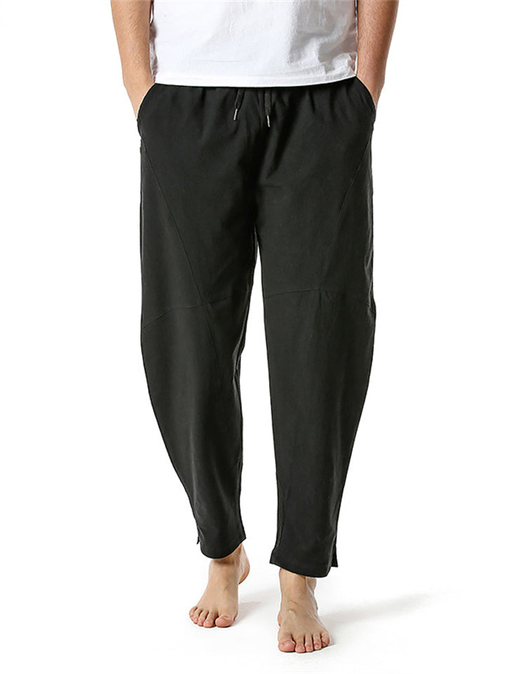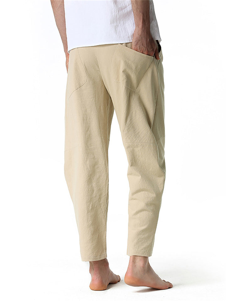 Vintage Japanese Street Style Drawstring Linen Pants for Men