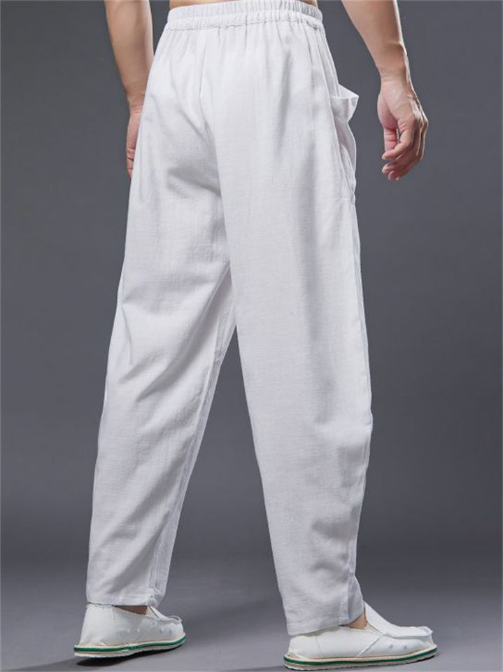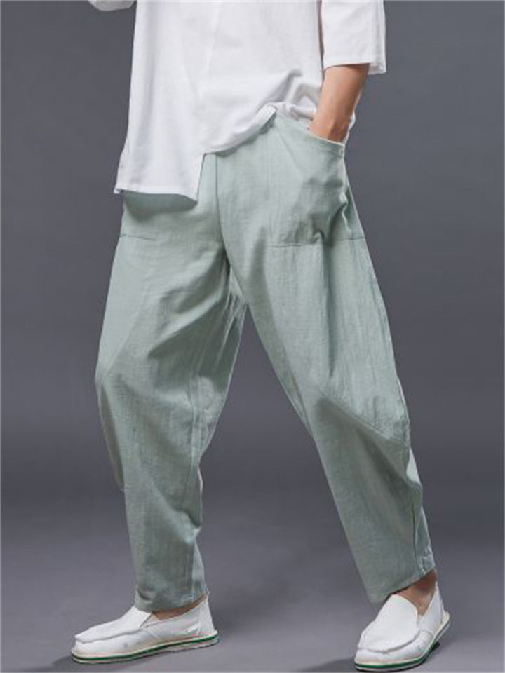 Vintage Japanese Street Style Drawstring Linen Pants for Men