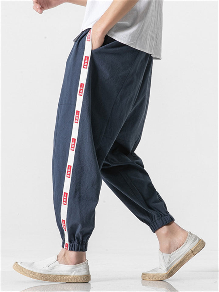 Men's Retro Summer Striped Drawstring Bloomers Jogger Pants