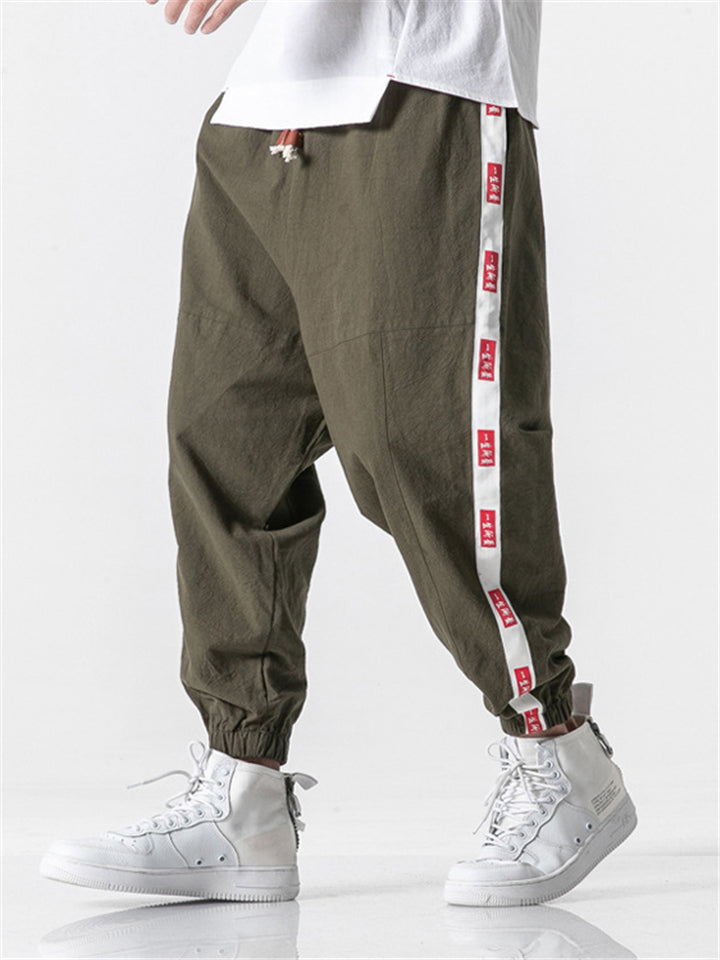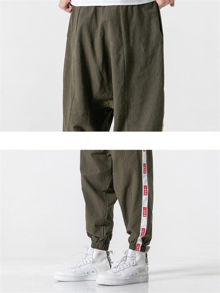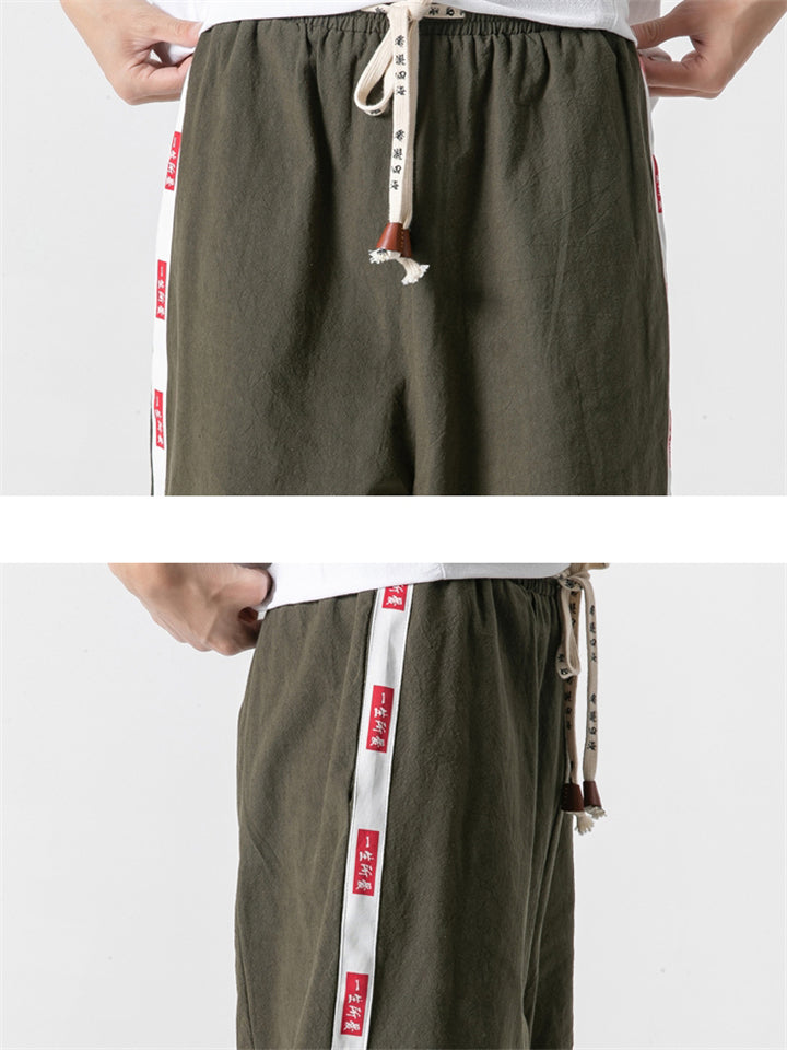 Vintage Japanese Street Style Drawstring Linen Pants for Men