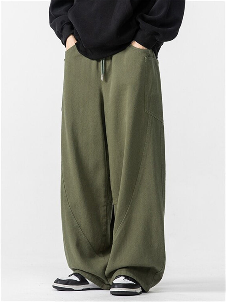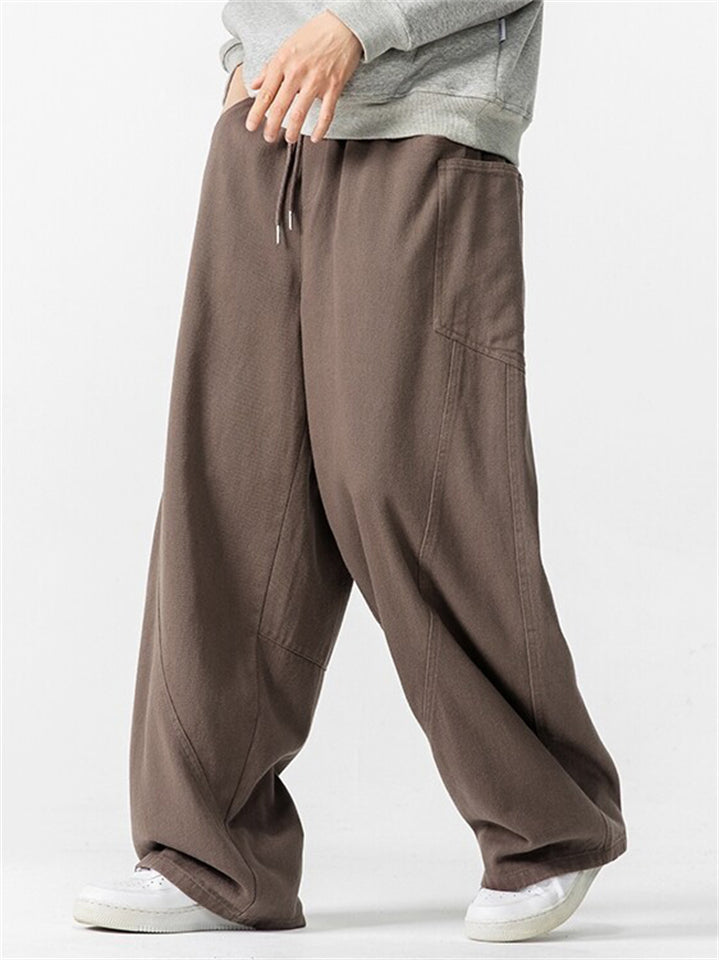 Retro Men's Comfy Japanese Style Elastic Waist Drawstring Loose Pants