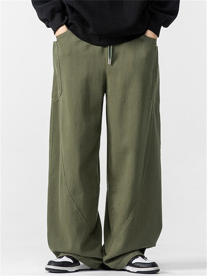 Vintage Japanese Street Style Drawstring Linen Pants for Men