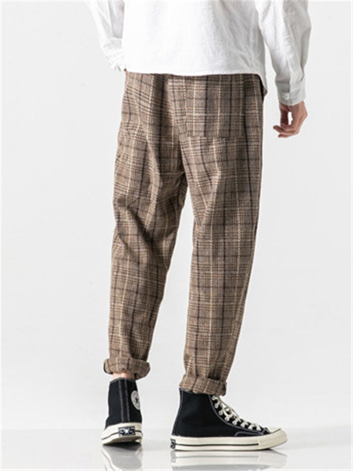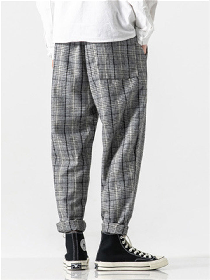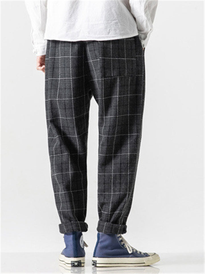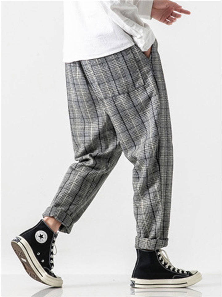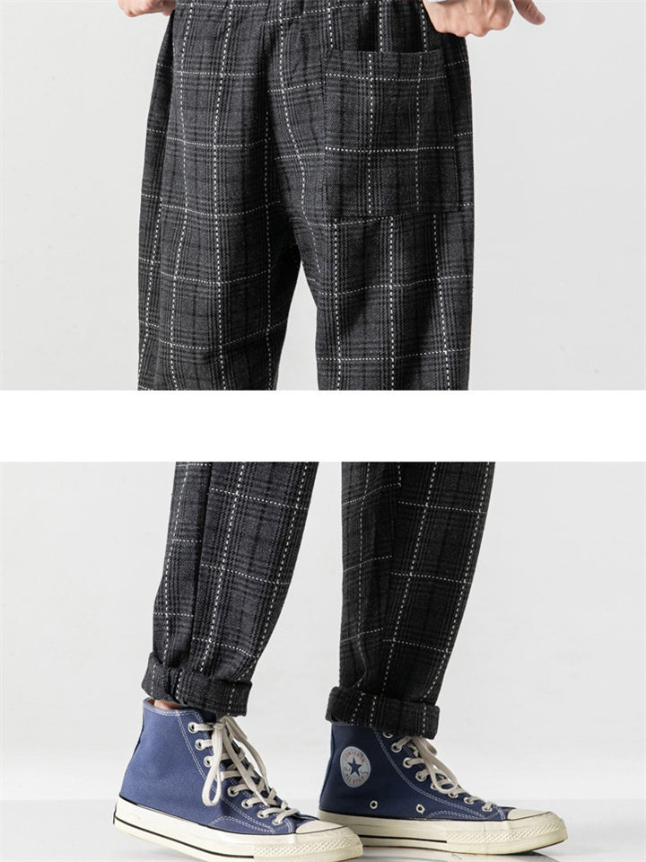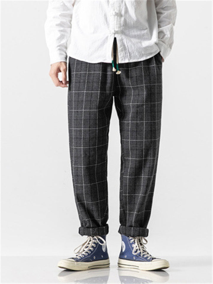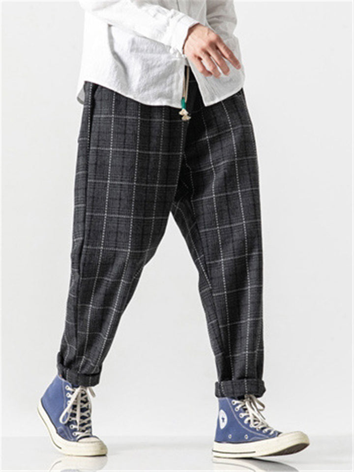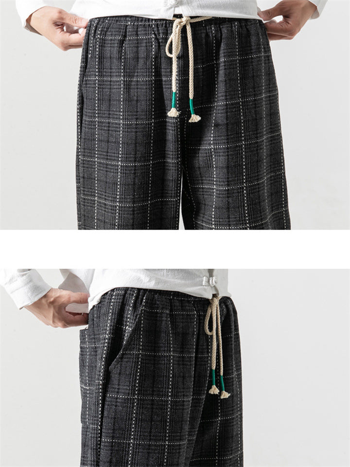 Vintage Japanese Street Style Drawstring Linen Pants for Men