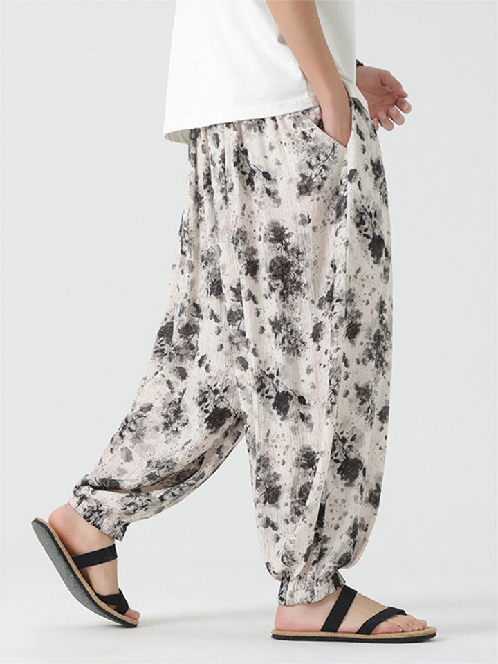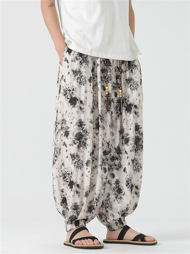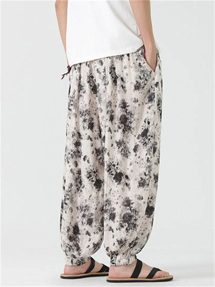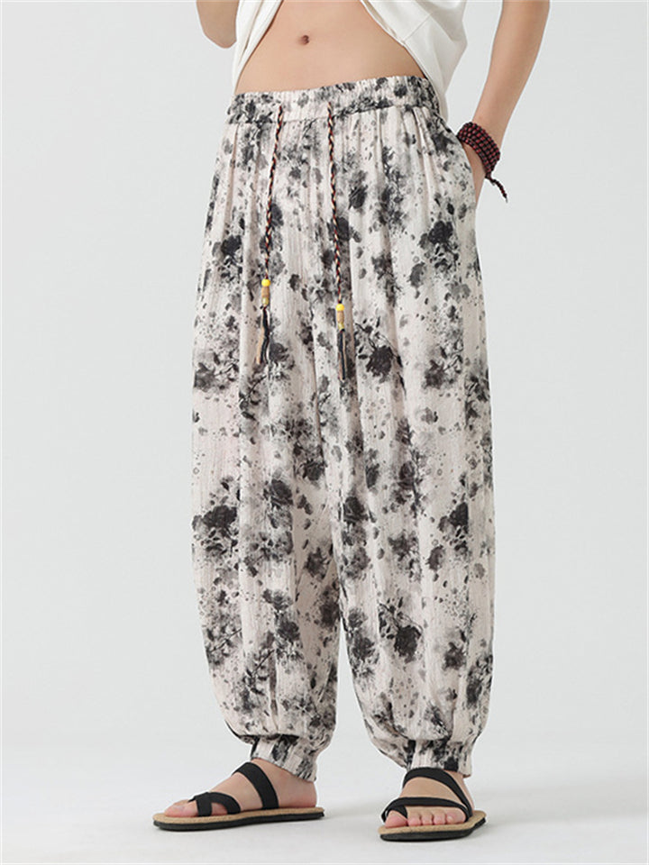 Retro Print Loose Ankle Tied Lantern Pants for Men