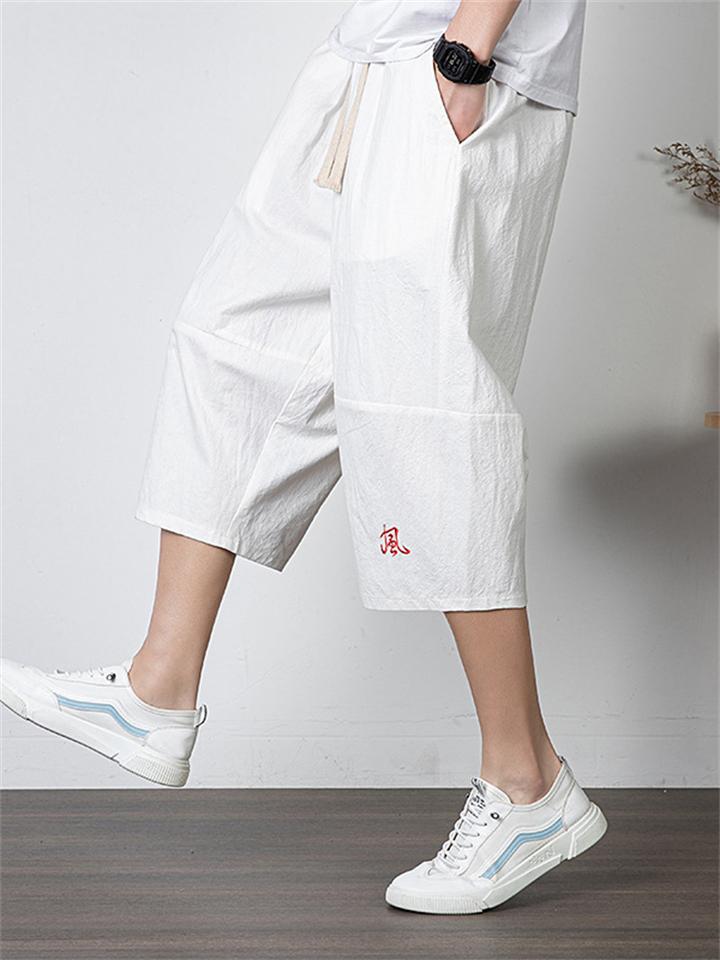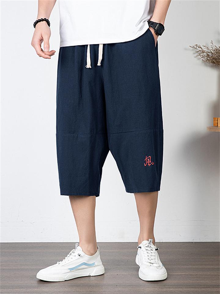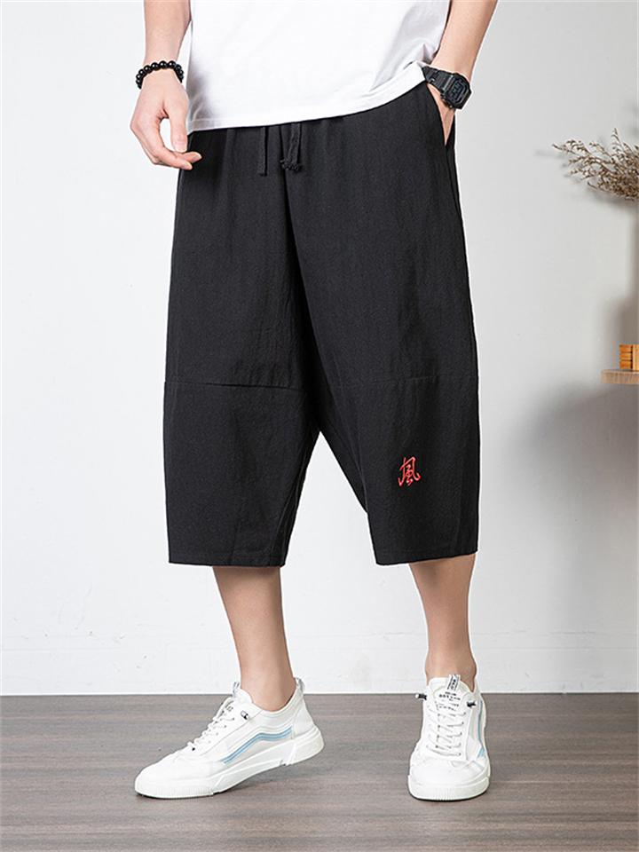 Men's Summer Ethnic Style Beach Bloomers Drop Crotch Capri Pants