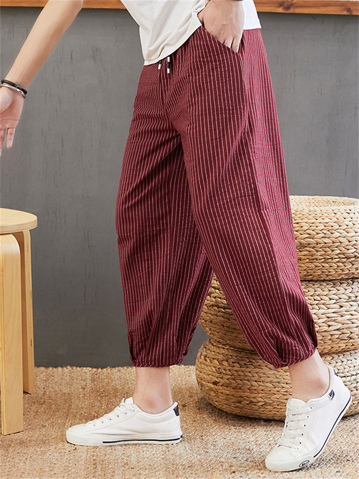 Men's Retro Summer Striped Drawstring Bloomers Jogger Pants