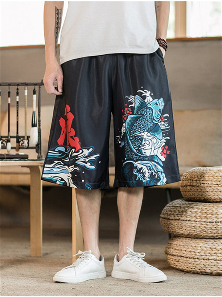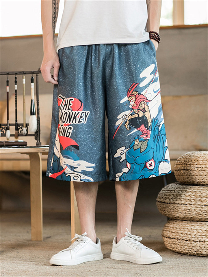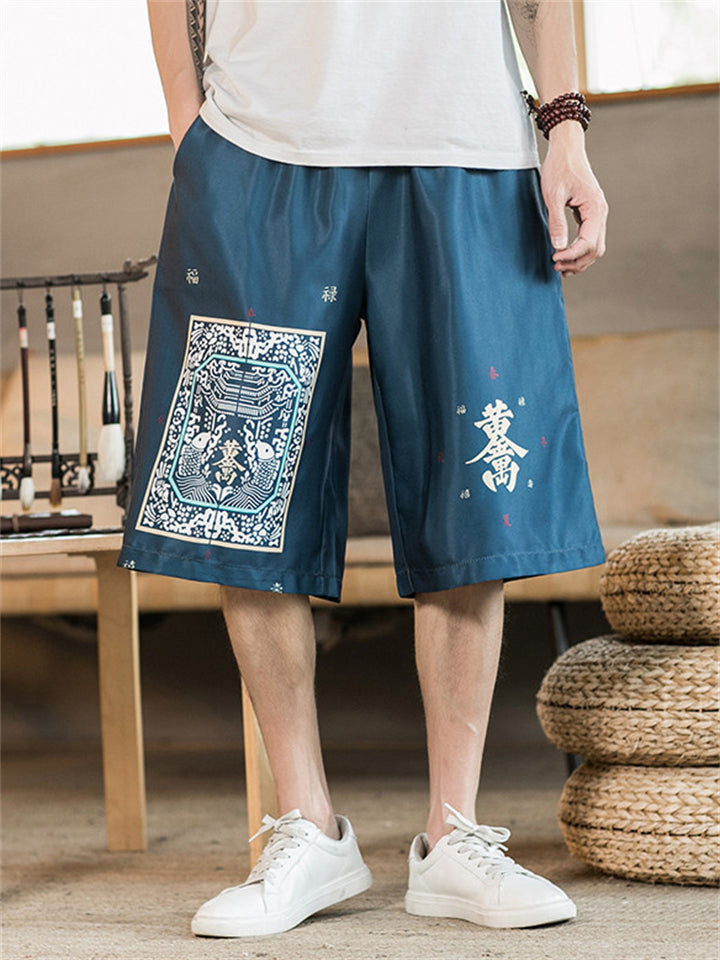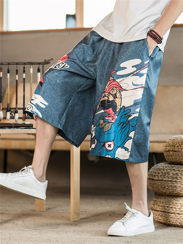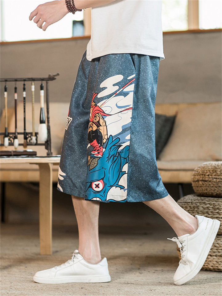 Men's Summer Ethnic Style Beach Bloomers Drop Crotch Capri Pants