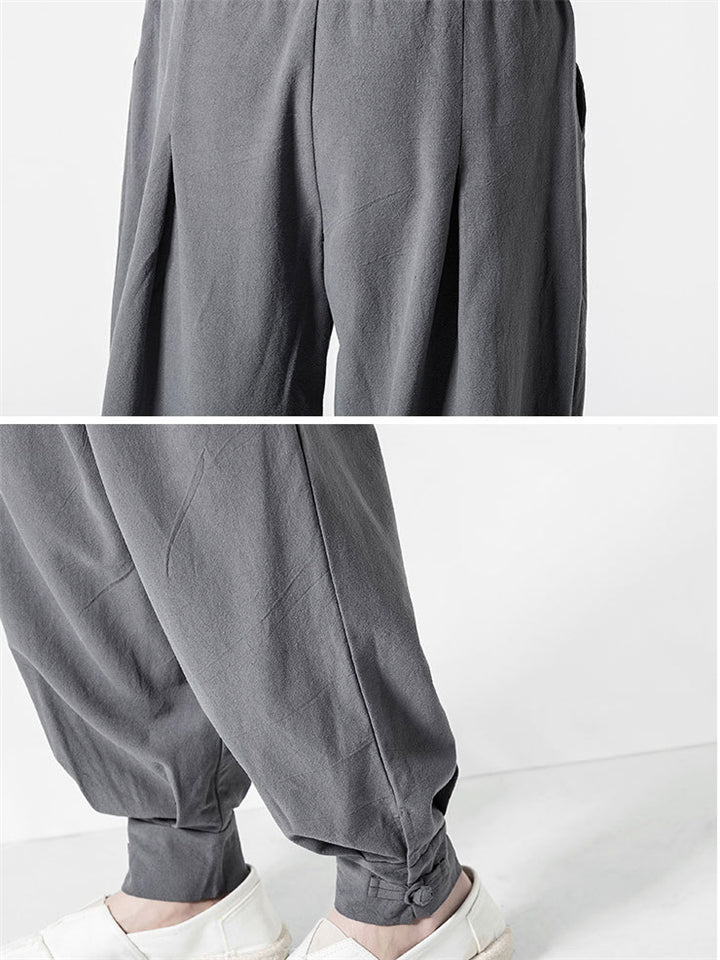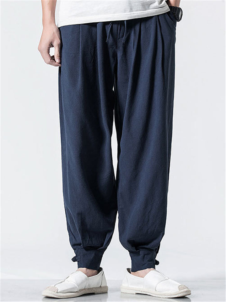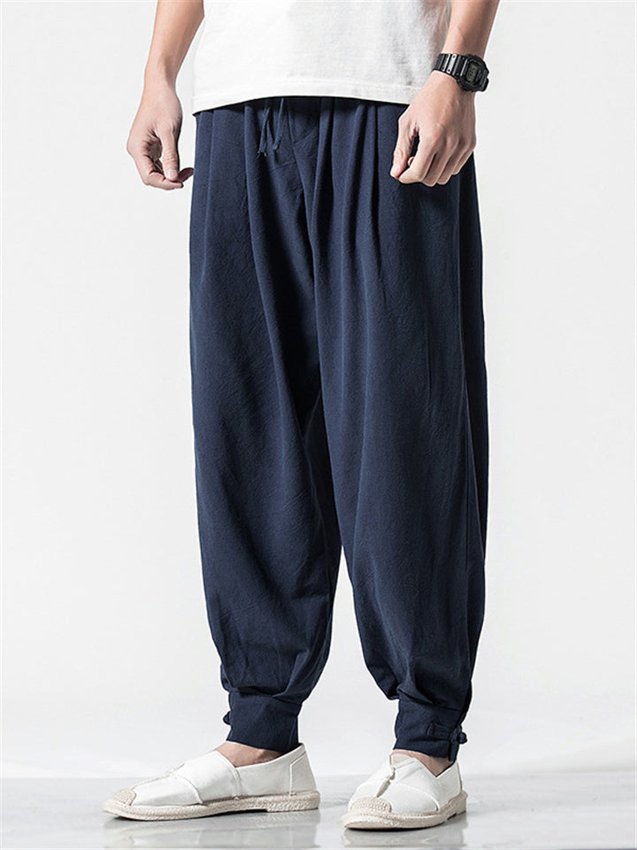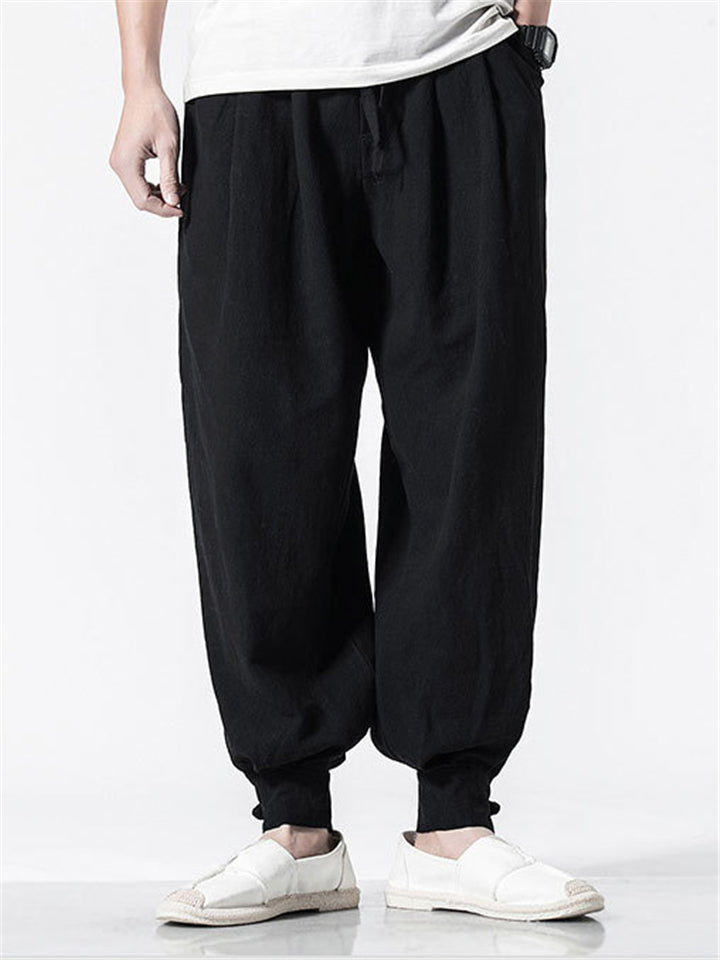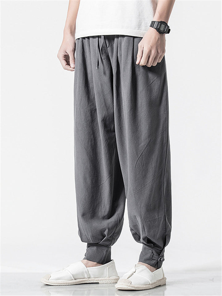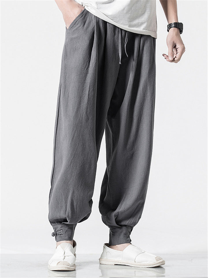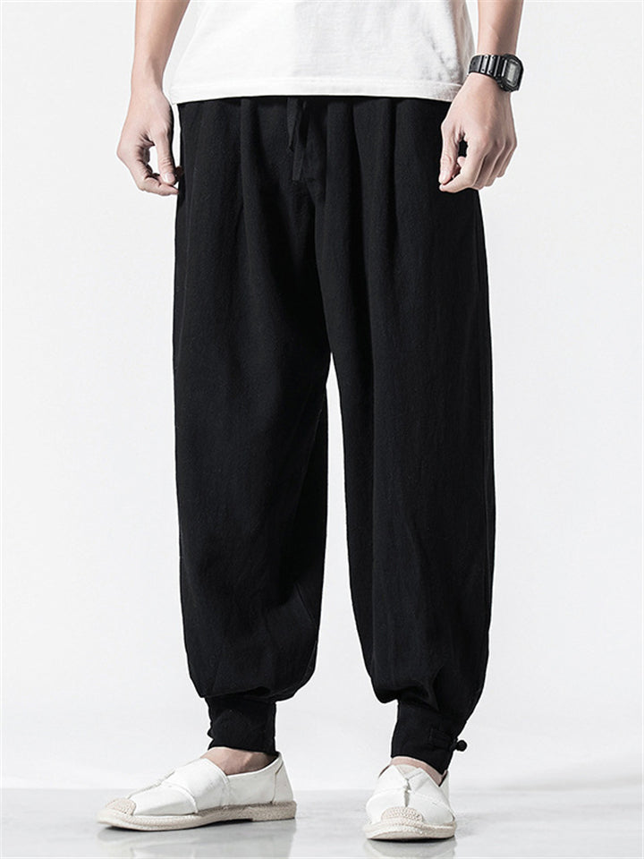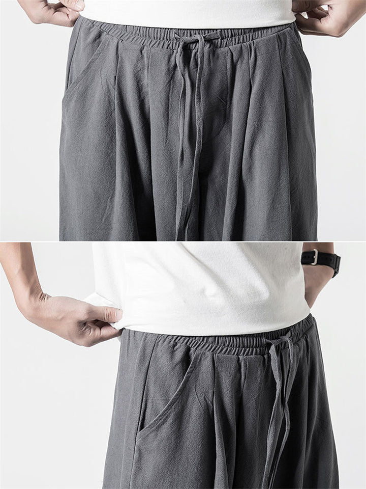 Vintage Japanese Street Style Drawstring Linen Pants for Men