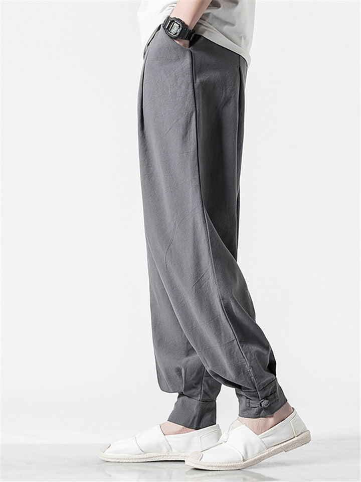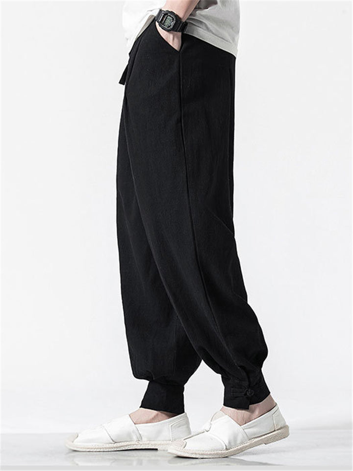 Men's Japanese Style Vintage Solid Color Texture Scimitar Pants