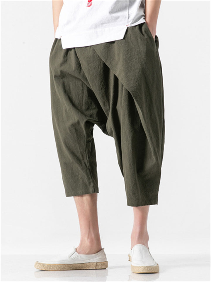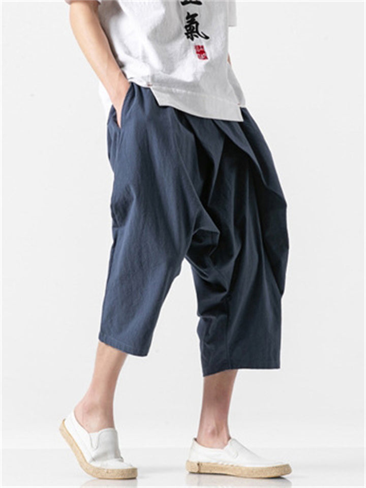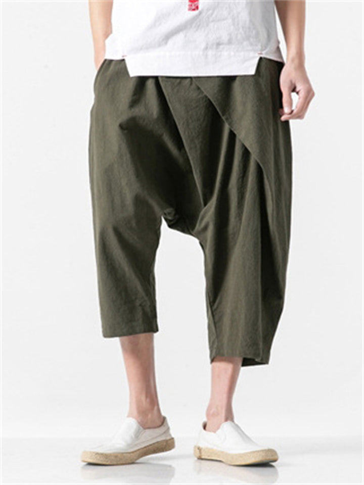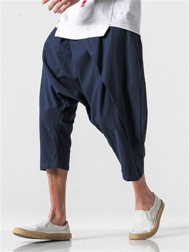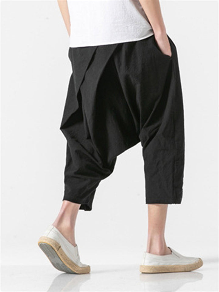 Men's Summer Ethnic Style Beach Bloomers Drop Crotch Capri Pants