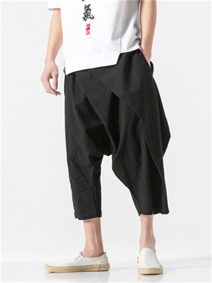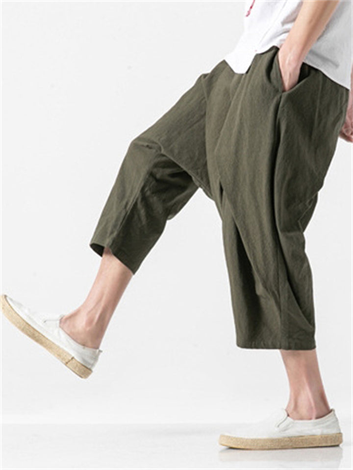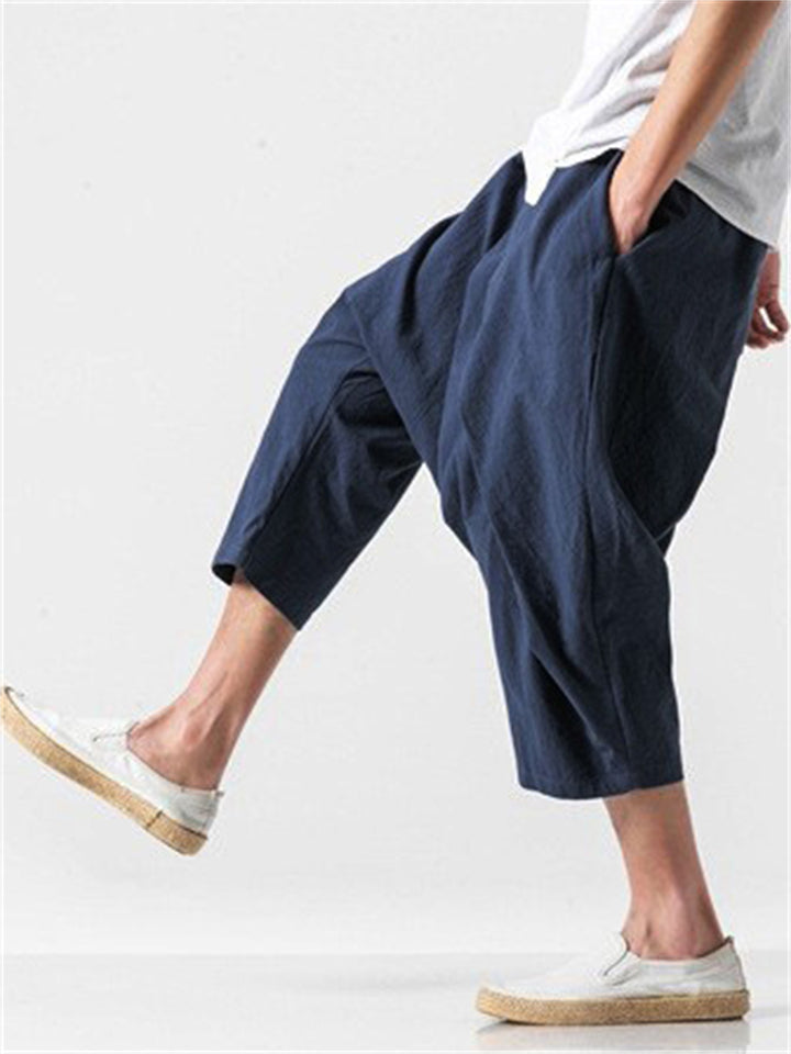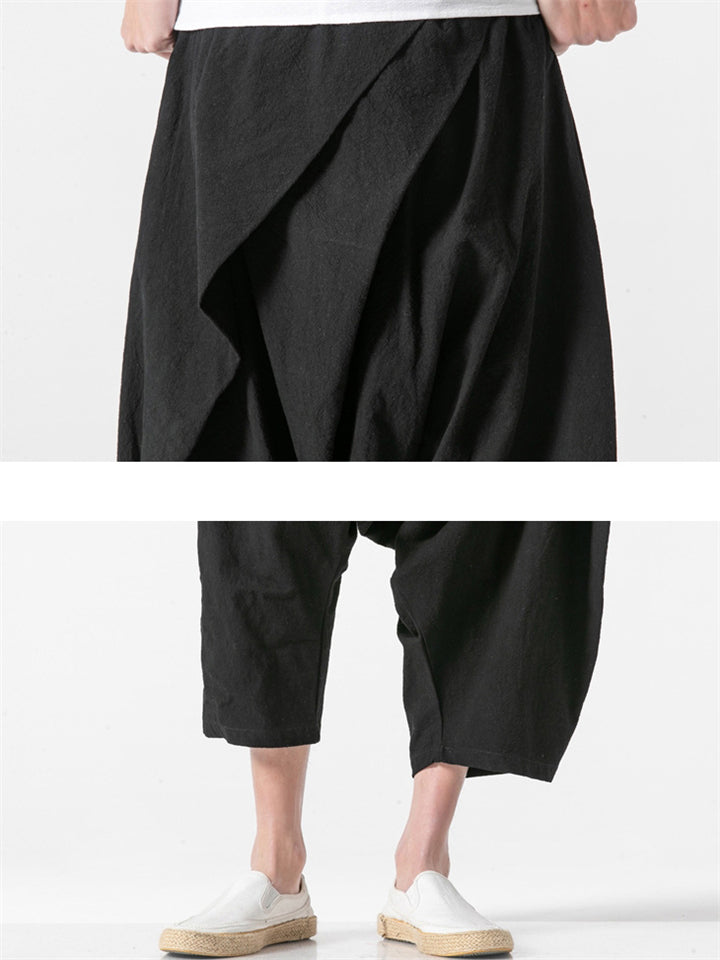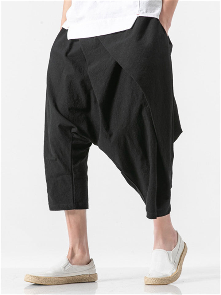 Men's Summer Ethnic Style Beach Bloomers Drop Crotch Capri Pants
