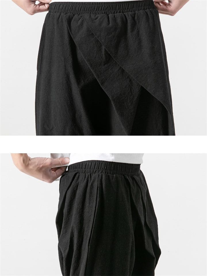 Men's Japanese Style Vintage Solid Color Texture Scimitar Pants
