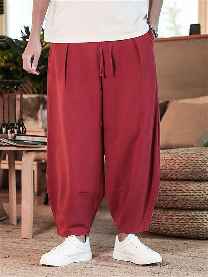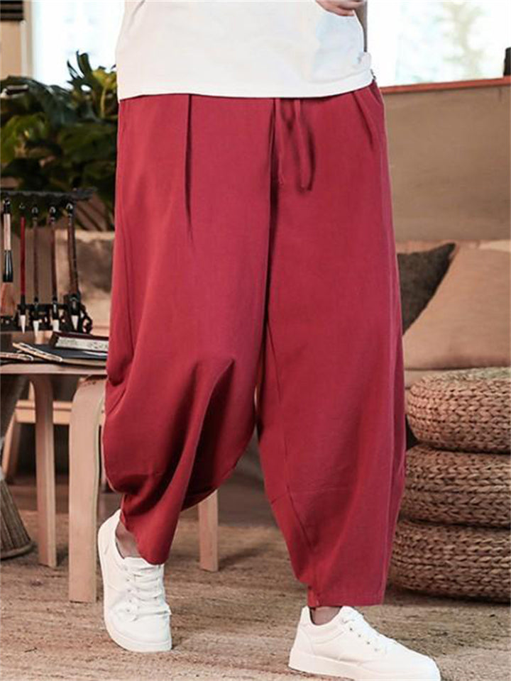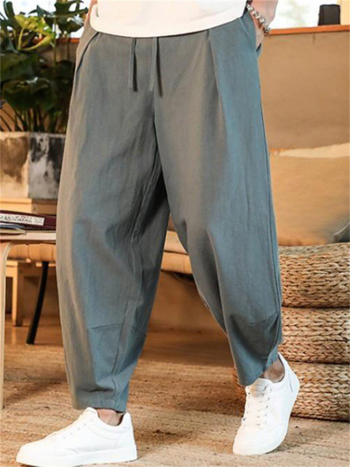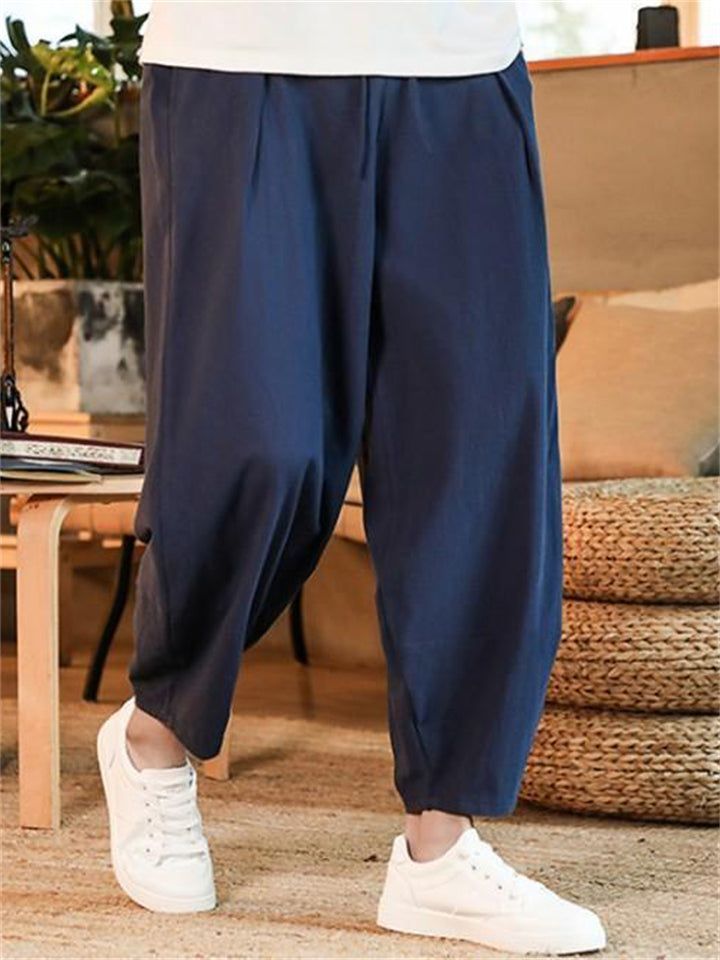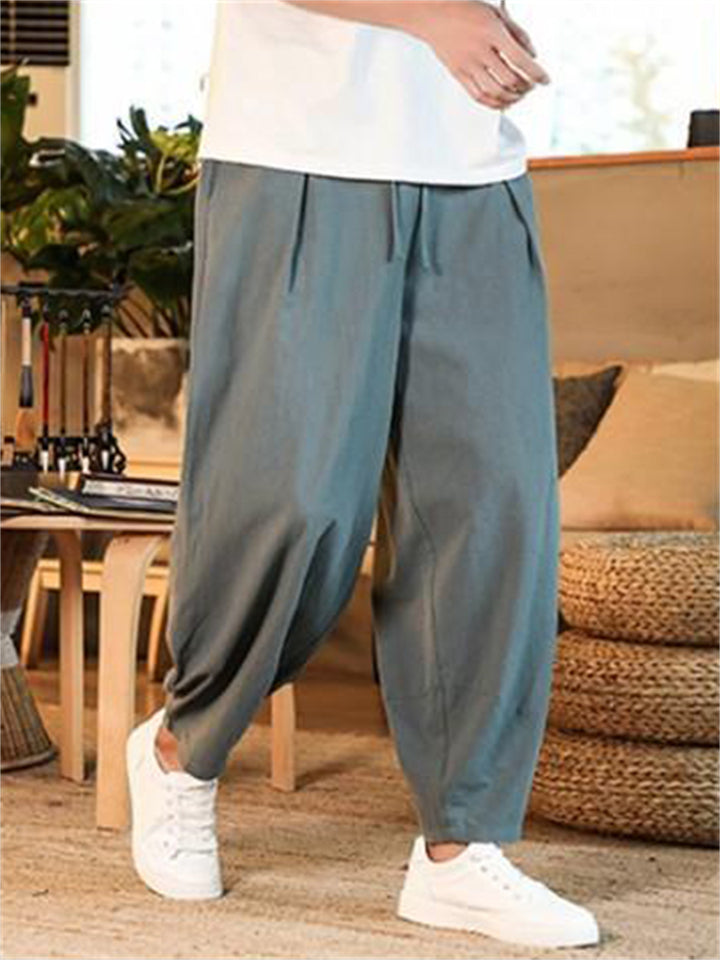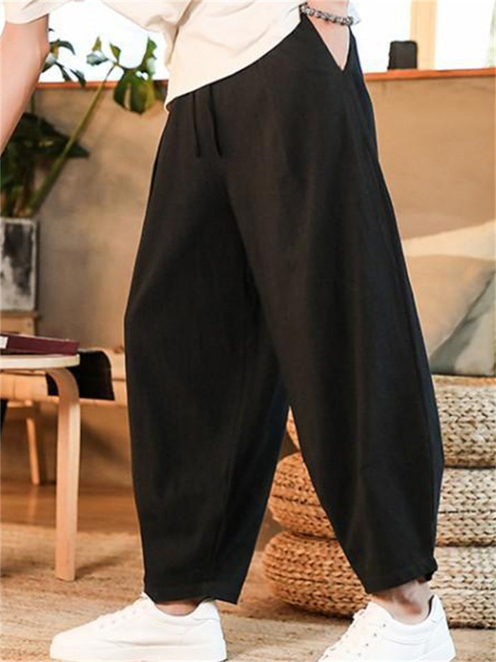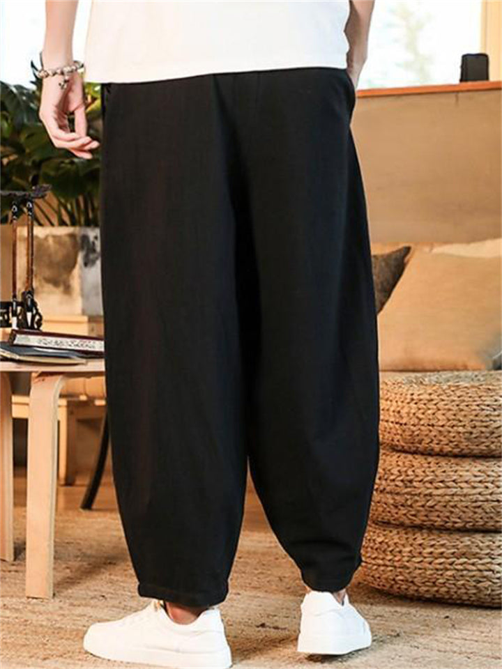 Solid Loose Cotton Linen Plus Size Pants For Men
