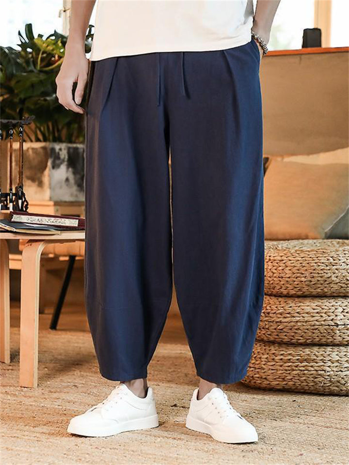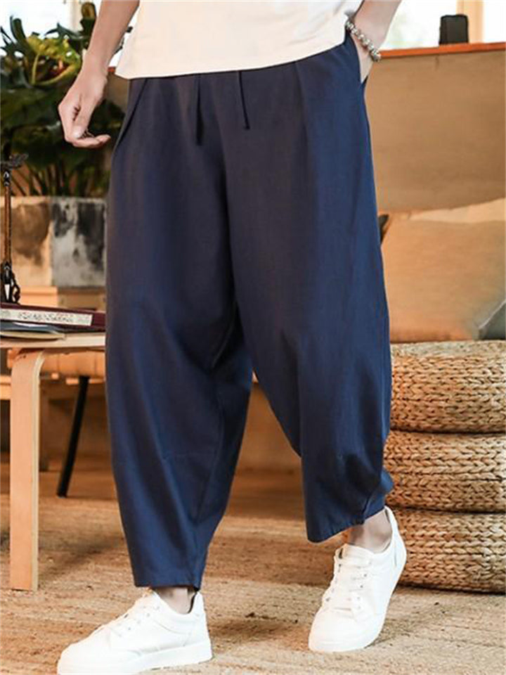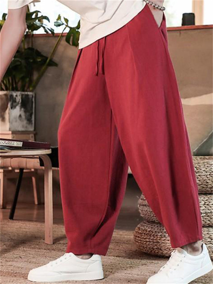 Vintage Japanese Street Style Drawstring Linen Pants for Men