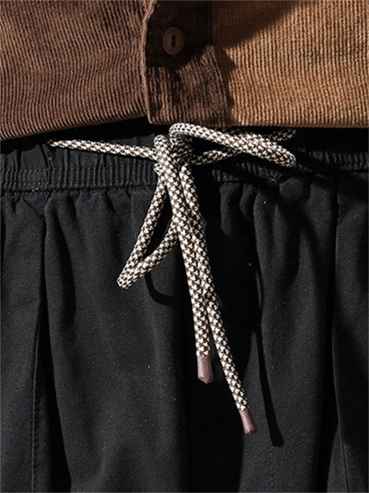 Vintage Japanese Street Style Drawstring Linen Pants for Men