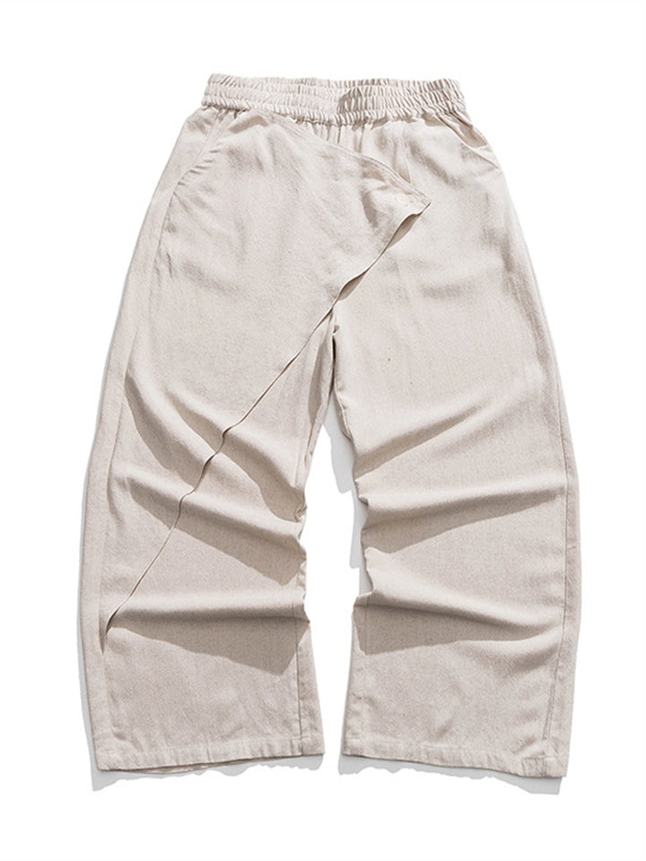 Spring Summer Men's Multi-layer Splicing Ramie Casual Pants