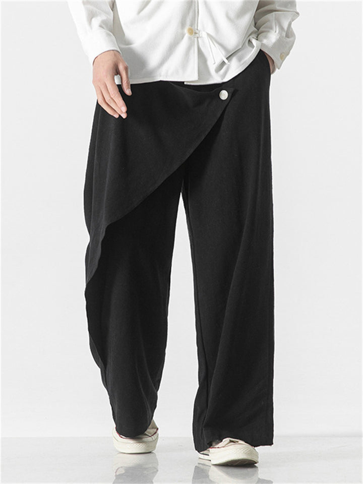 Men's Japanese Style Vintage Solid Color Texture Scimitar Pants