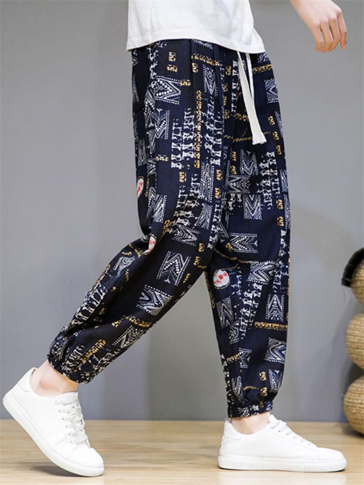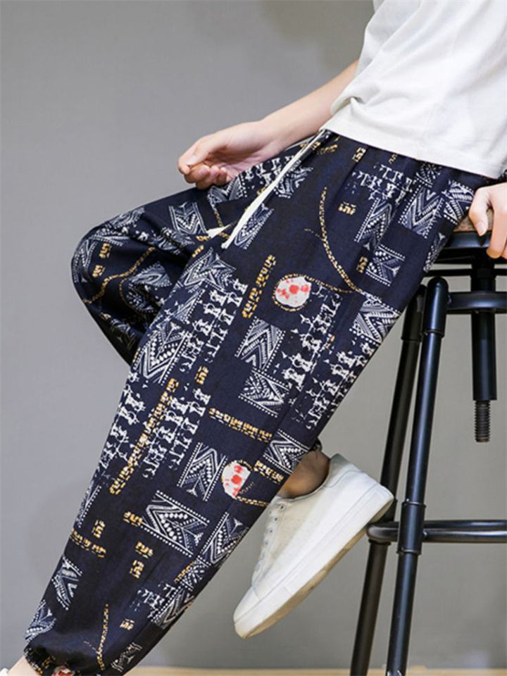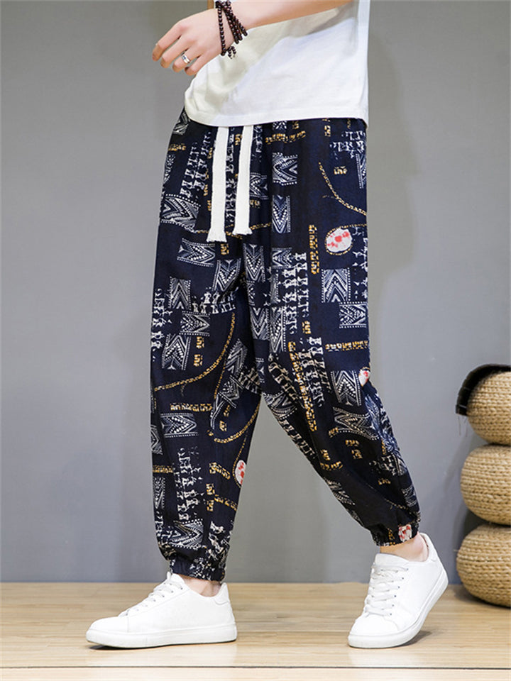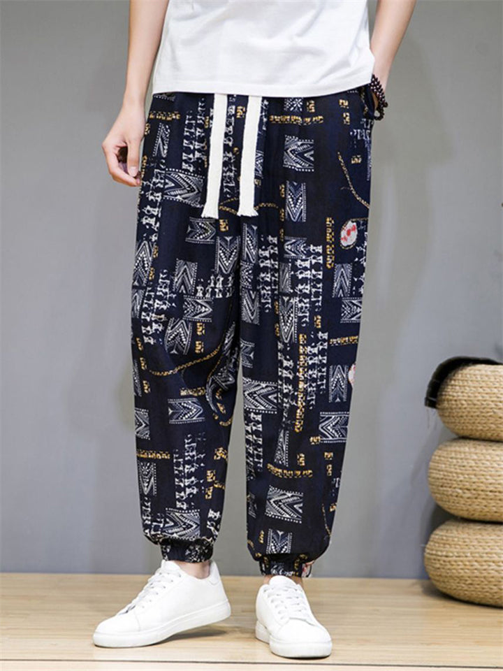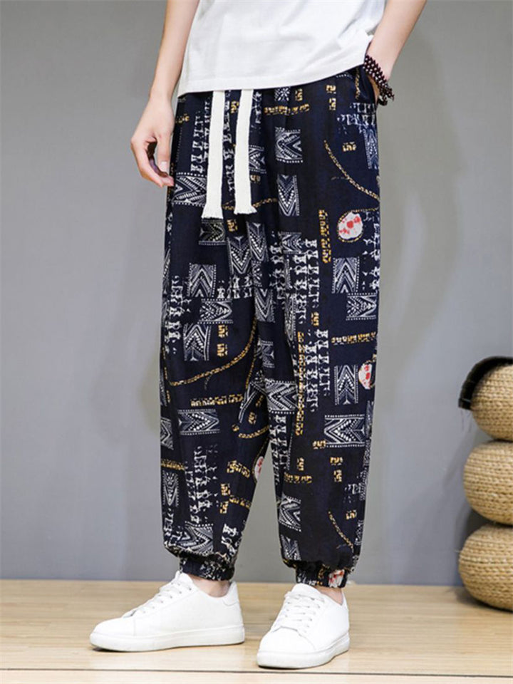 Men's Summer Ethnic Style Beach Bloomers Drop Crotch Capri Pants