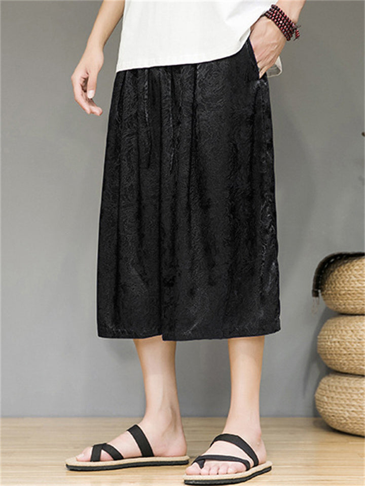 Men's Japanese Style Vintage Solid Color Texture Scimitar Pants