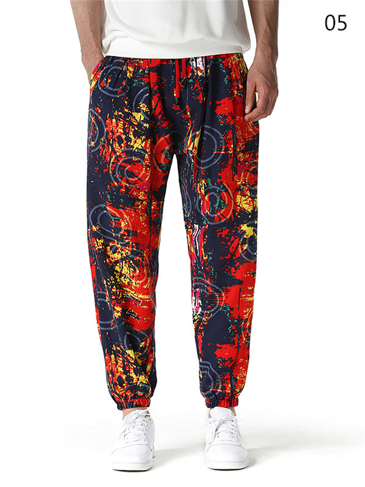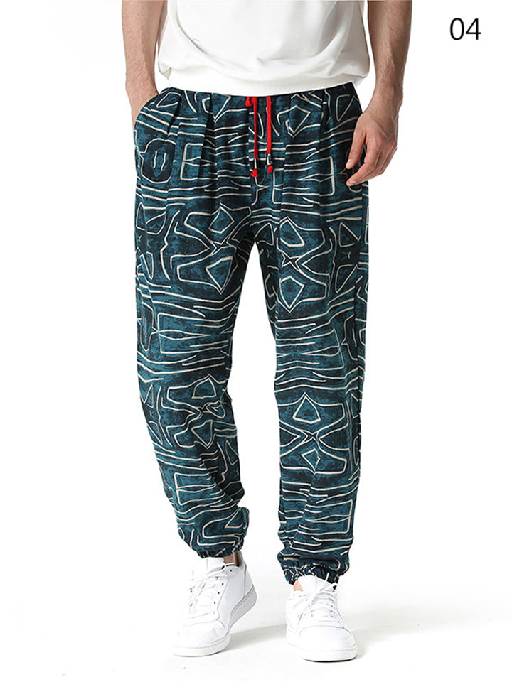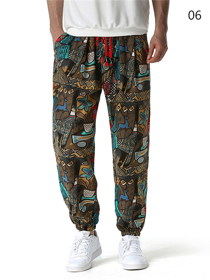 Men's Summer Ethnic Style Beach Bloomers Drop Crotch Capri Pants
