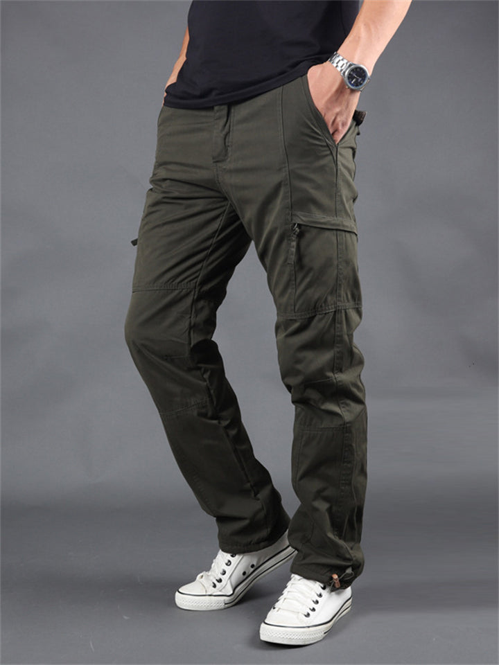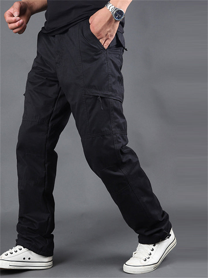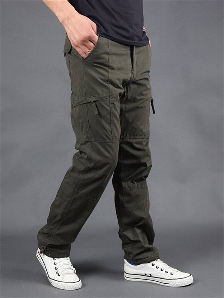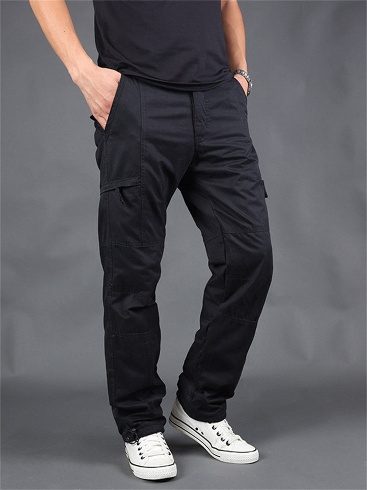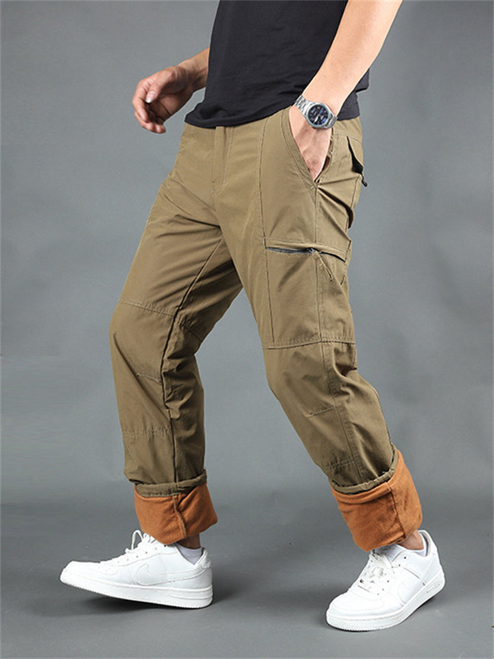 Winter Plus Size Thickened Fleece Male Multi-pocket Pants