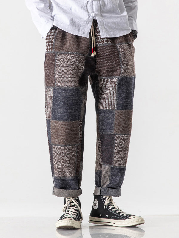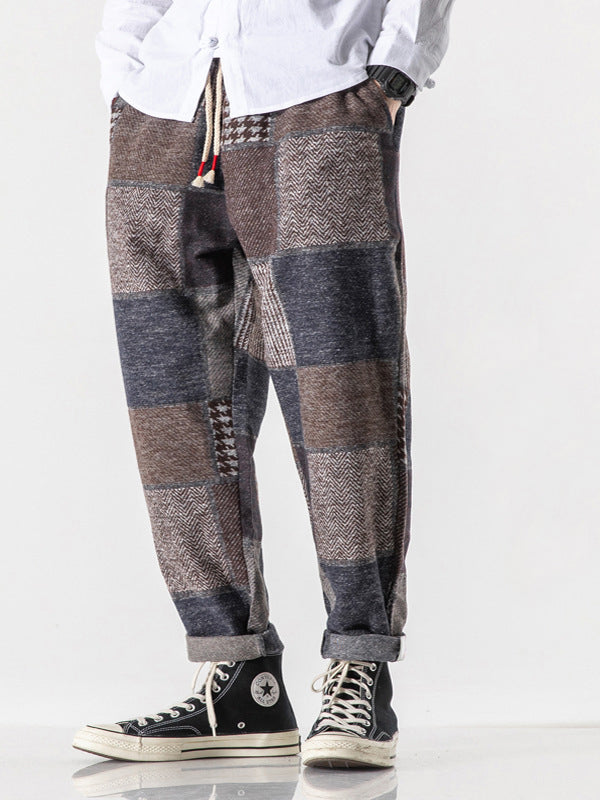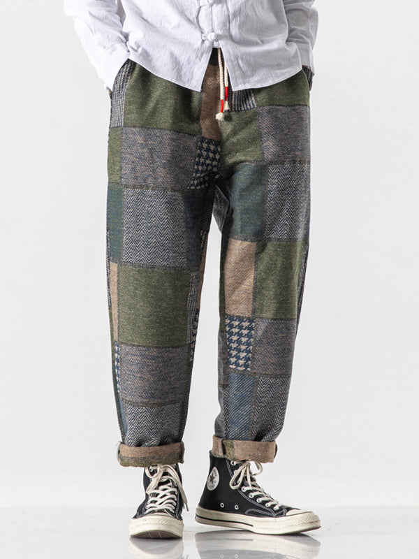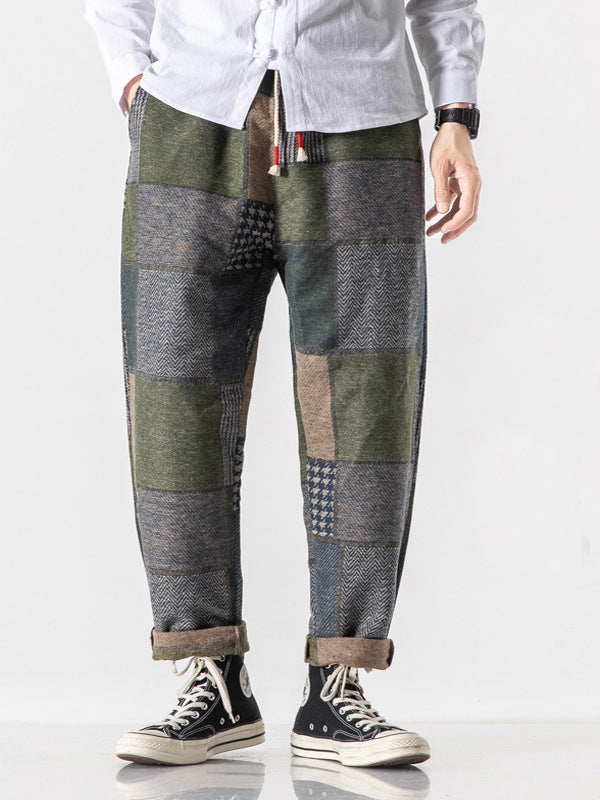 Vintage Japanese Street Style Drawstring Linen Pants for Men