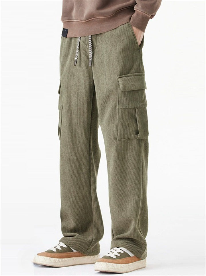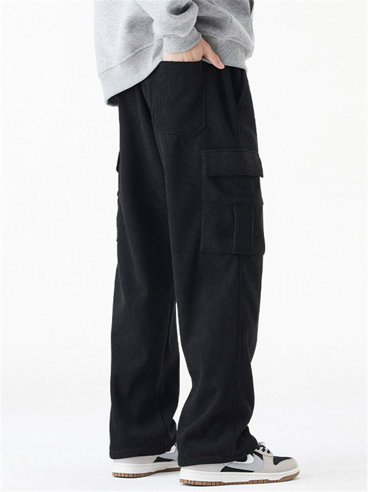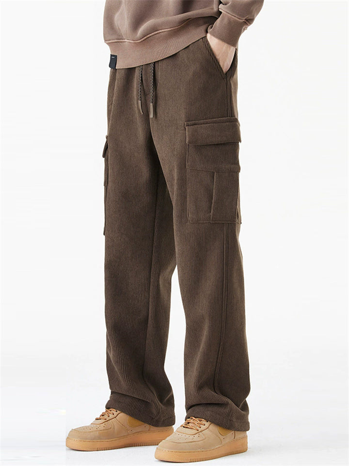 Winter Warm Fleece Lined Cargo Pocket Drawstring Men Casual Pants