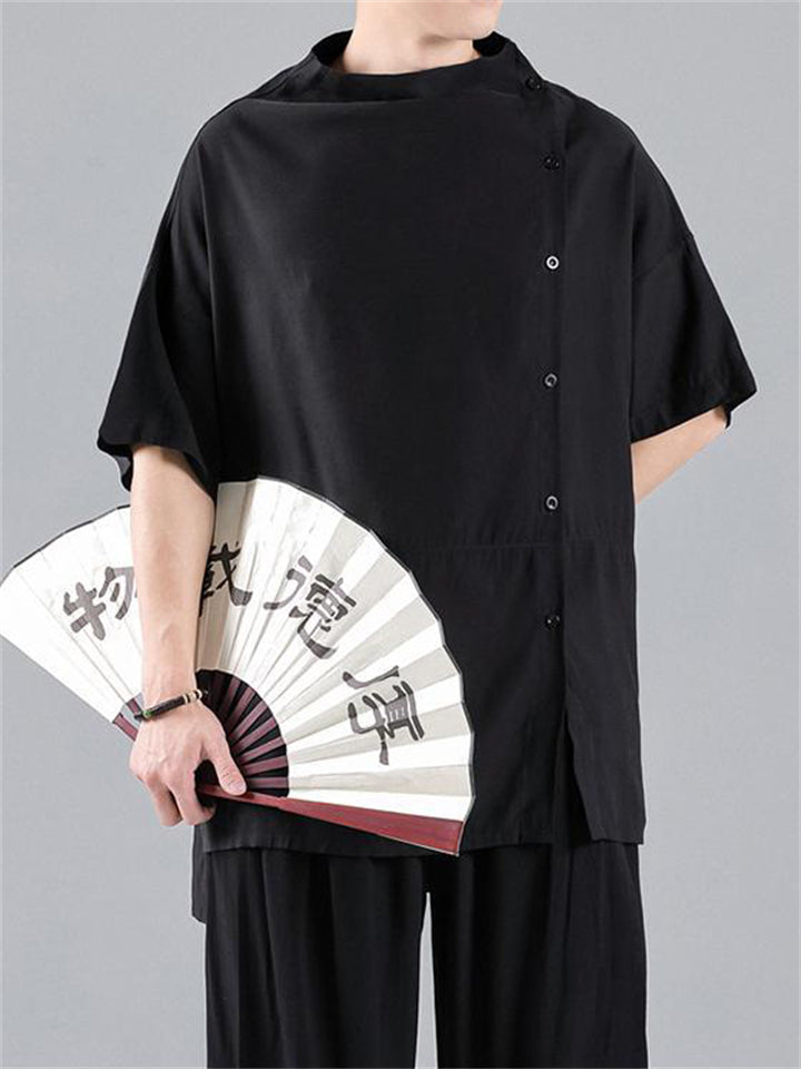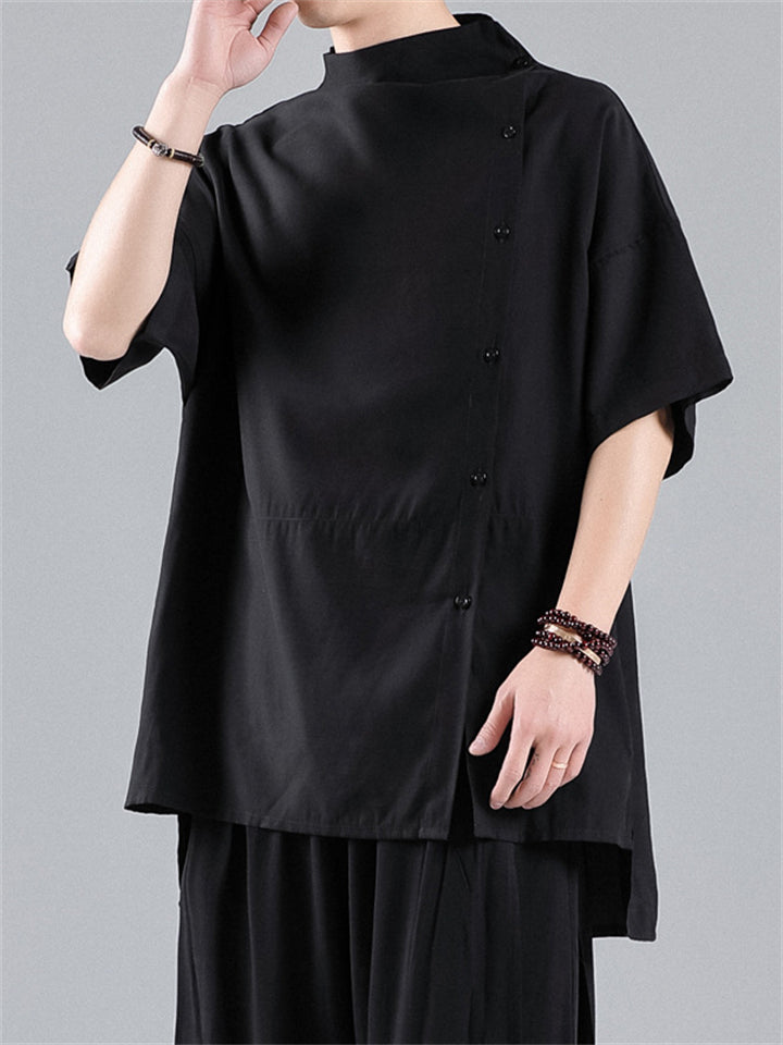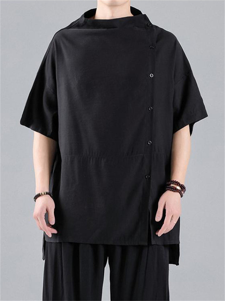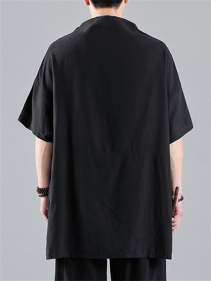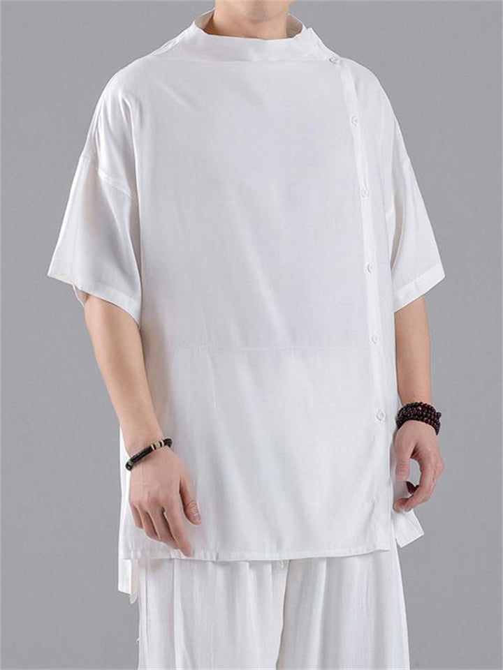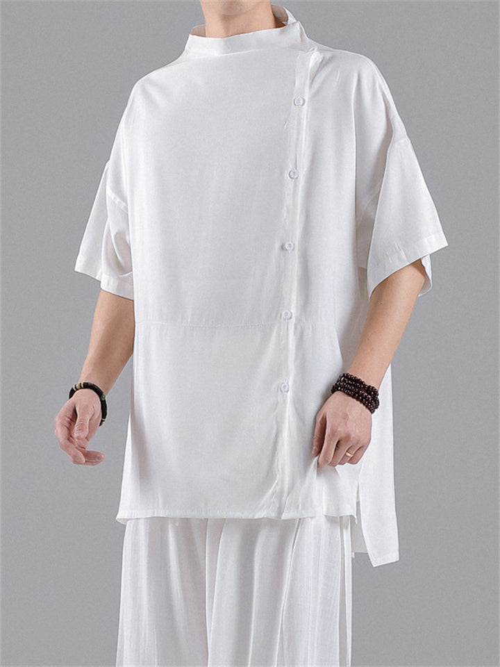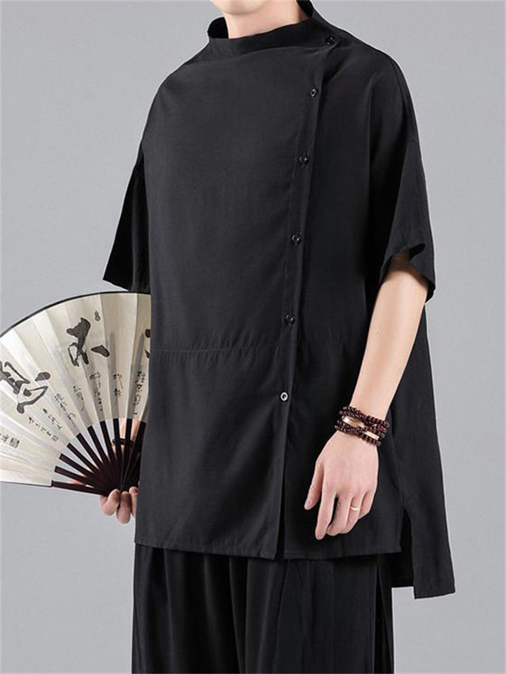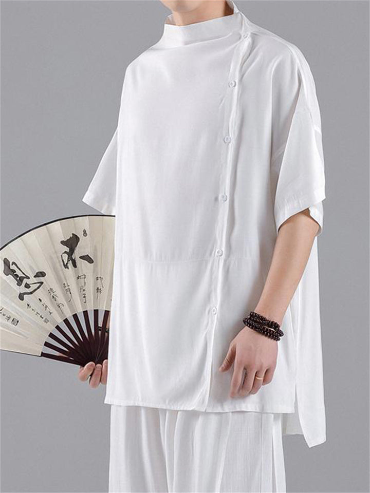 Chinese Style Side Slit Summer Relaxed Shirt for Men