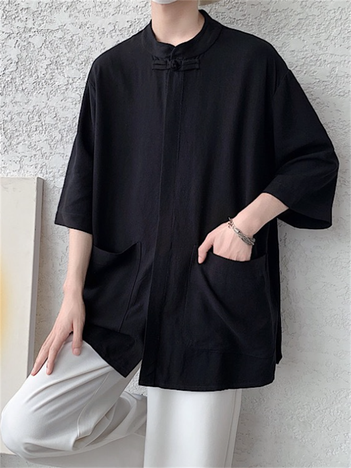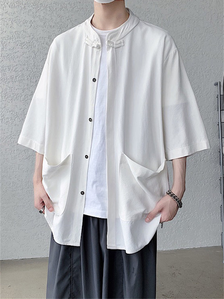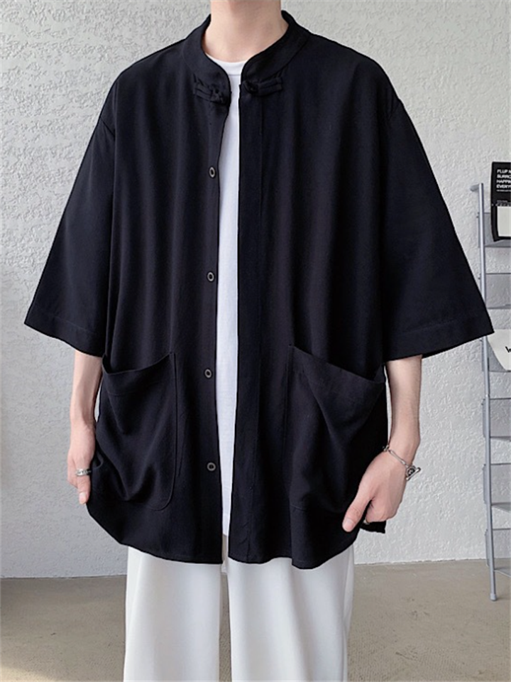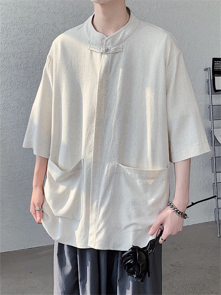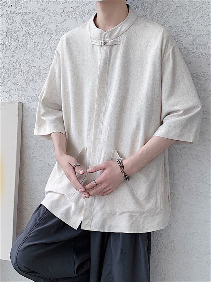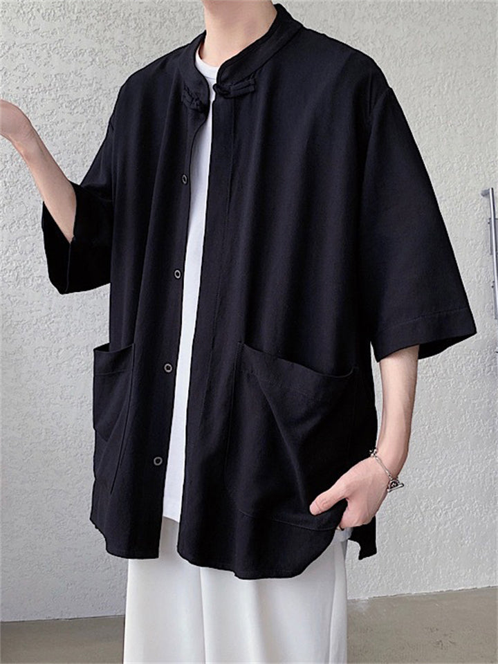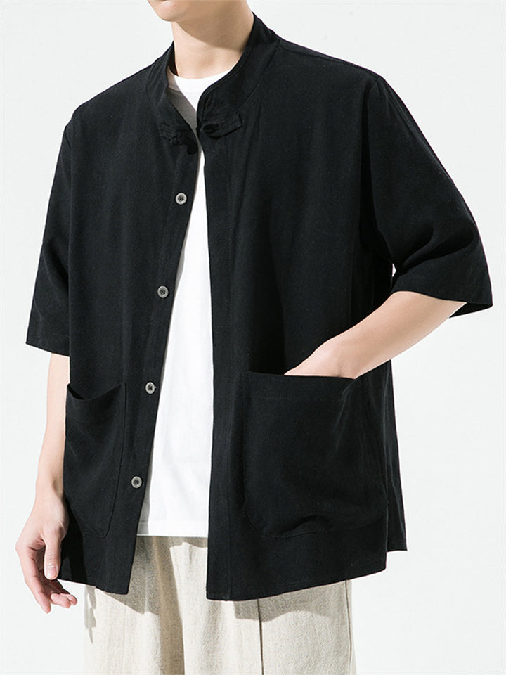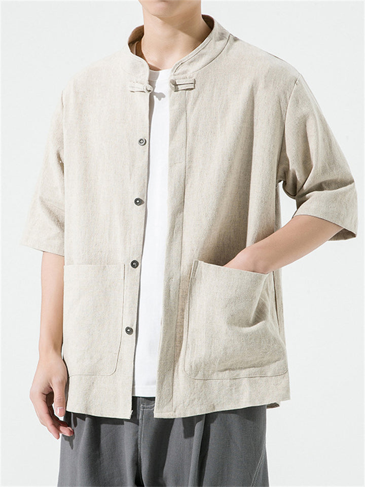 Men's Vintage Summer Solid Color 3/4 Sleeve Stand Collar Shirts
