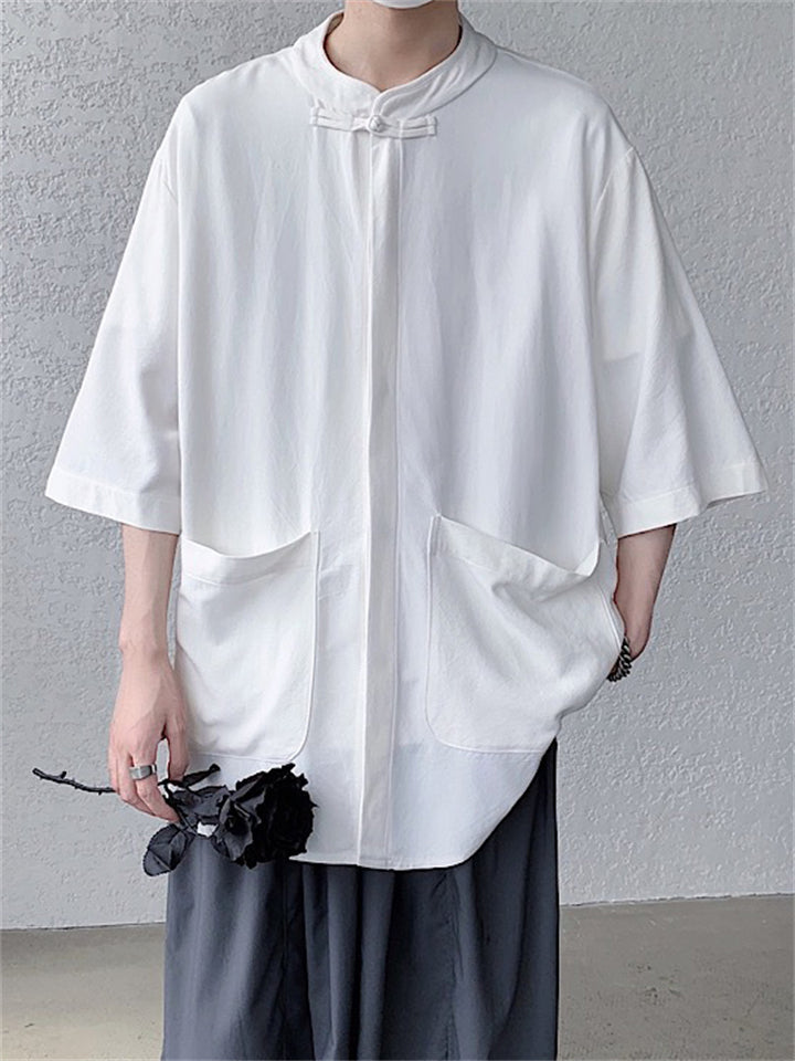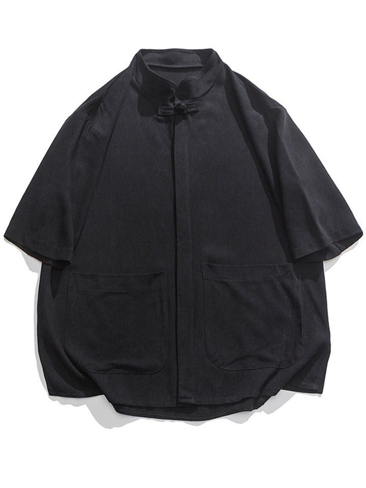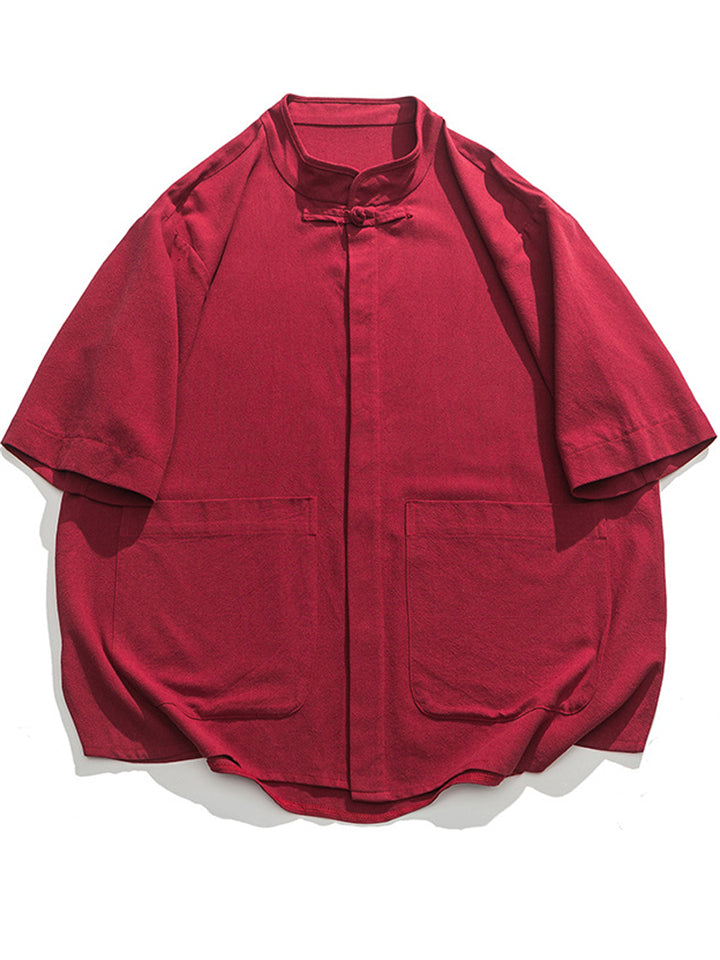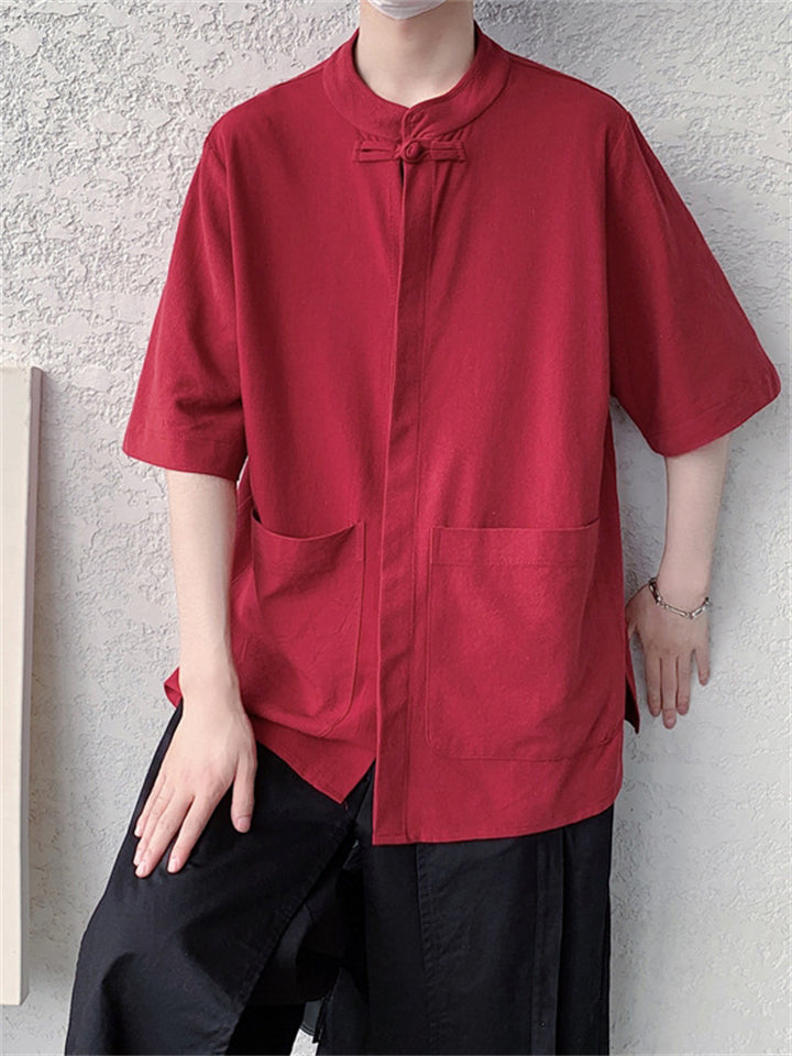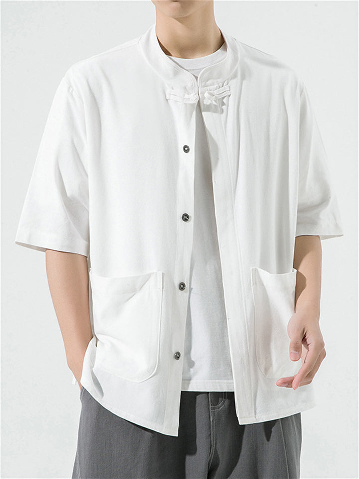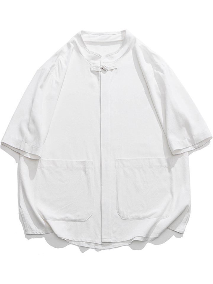 Men's Simple Chinese Style Ramine Stand Collar Tangsuit Shirts