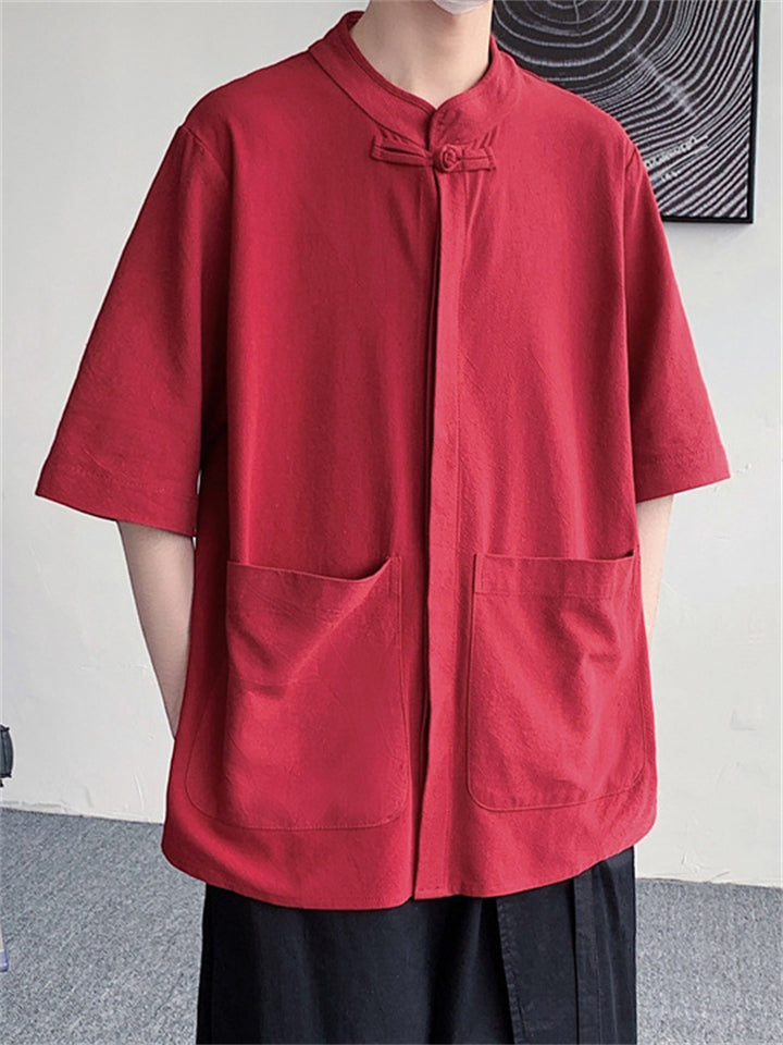 Chinese Style Cotton Linen Cozy Summer Men's Short Sleeve Shirt