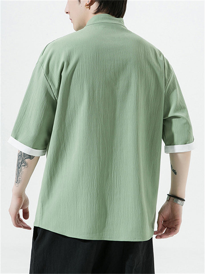 Men's Vintage Summer Solid Color 3/4 Sleeve Stand Collar Shirts
