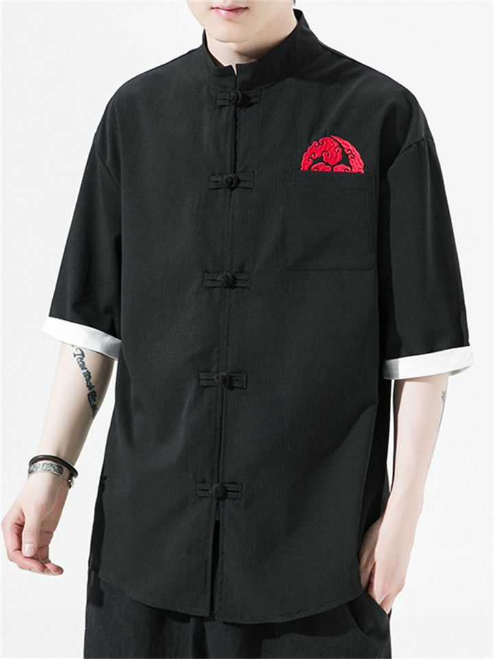 Chinese Style Embroidery Frog Button Half Sleeve Shirts