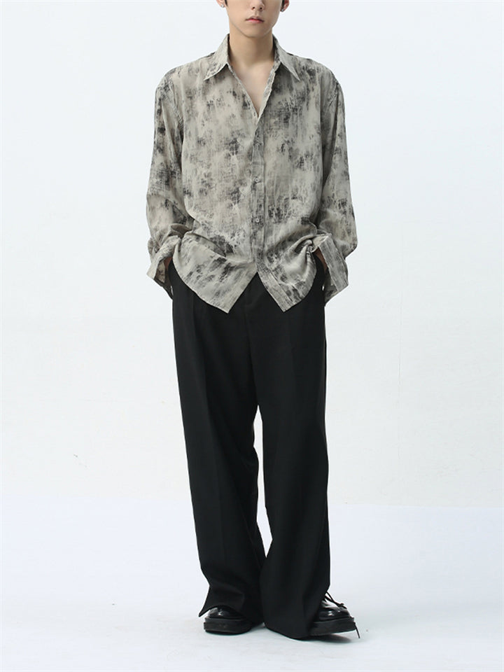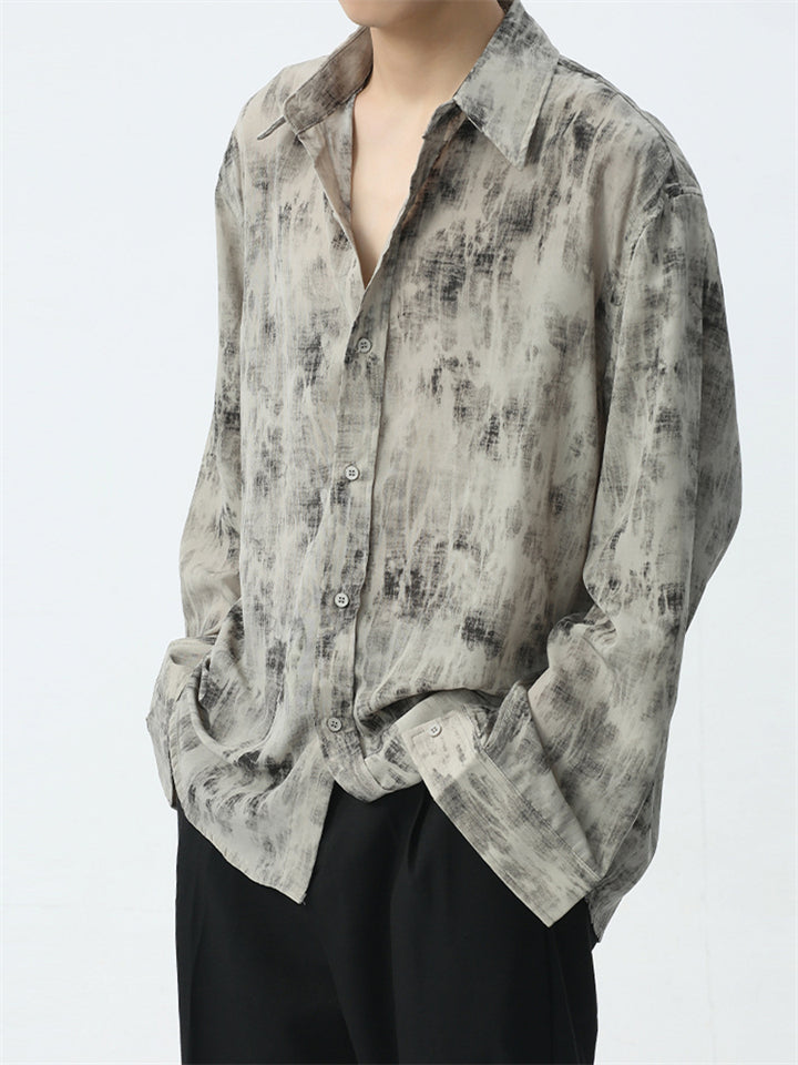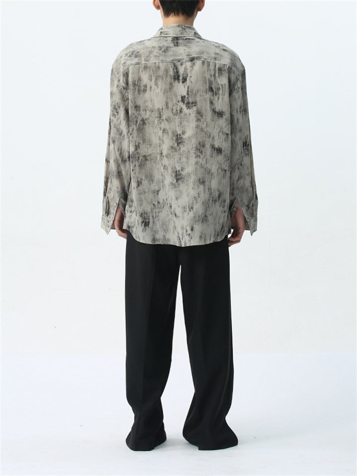 Chinese Style Ink Tie-Dye Men's Long Sleeve Shirts